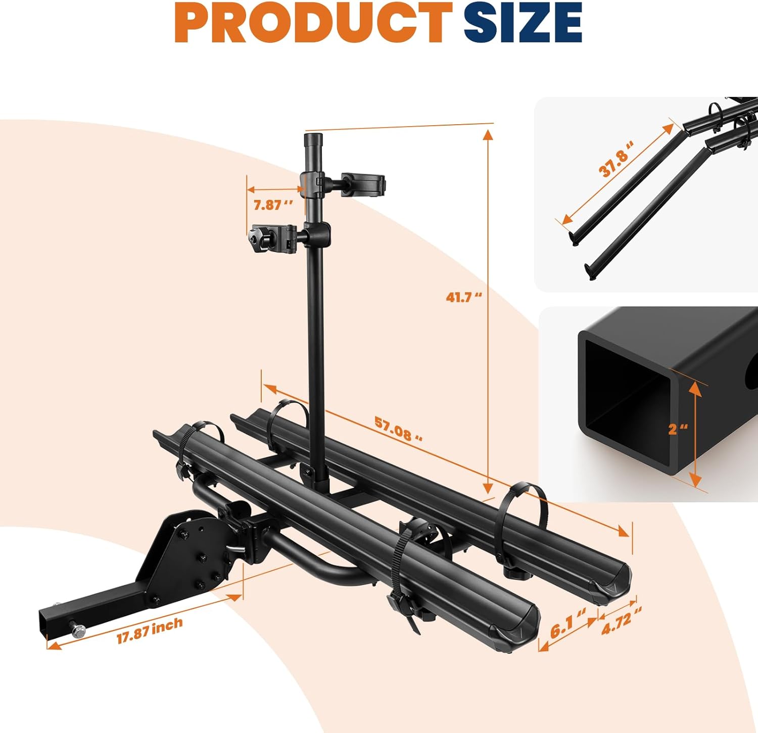 - Triangle Secure Design: Carrier racks adopted 360° adjustable clamps to secure 2 ebikes for your needs. This hitch mounted carrier comes with extra lockable straps and TPR Pad for further security and settling your bike in place.