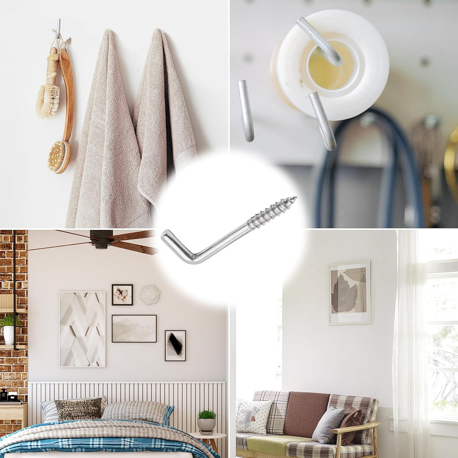 304 Stainless Steel 2 in Screw-in Hooks 20 Pcs,7 Shape Screw Hooks,Right Angle Medal Hooks l Shaped Screw in Hooks for Hanging