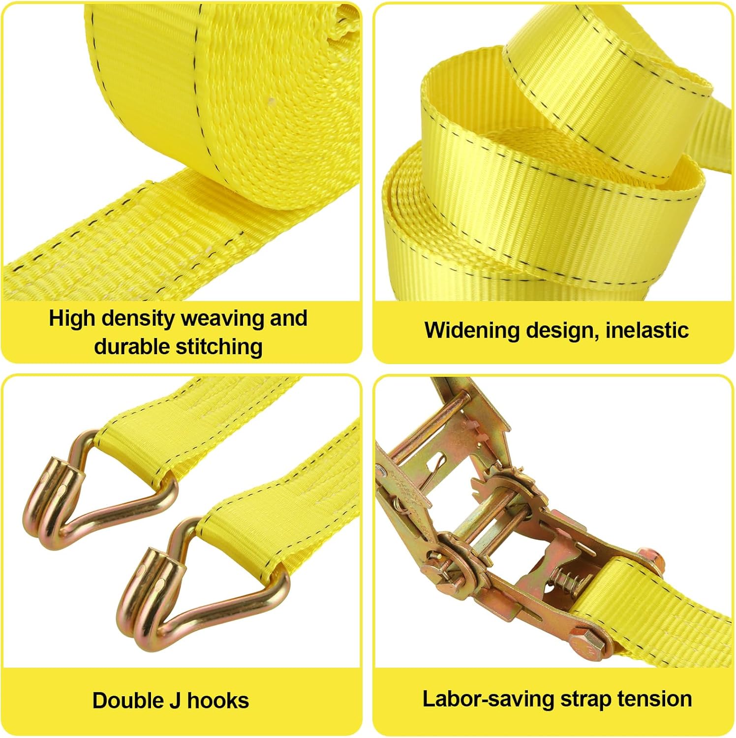 4 Pack 2 Inch Ratchet Straps Heavy Duty 20ft Tie Down Straps Ratchet with Double J Hook, 10000 LBS Break Strength, Cargo Ratchet Straps for Moving, Truck, Trailers, Motorcycles, Kayaks, Car Roof