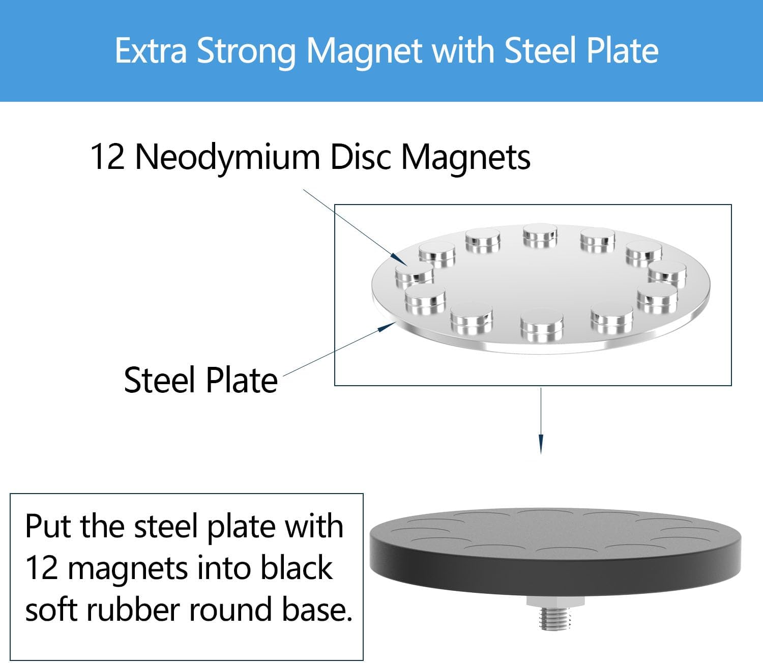 - 🧲[Sturdy Magnetic Holders]: Each 3.46-inch magnet base comes equipped with 12 super-strong rare earth magnets. In our tests on 1.18-inch steel plates, the strong garage magnetic hooks exhibited a vertical pull force of 130lbs and a horizontal pull force of 26lbs.