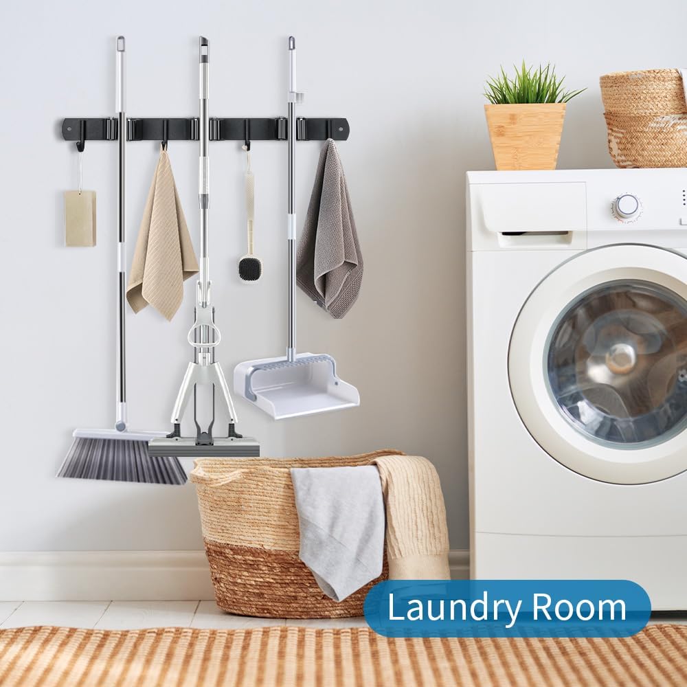 - 🏠【EASY TO INSTALL and USE】: Easy install for any busy mom, just drilling it into the stud, and never worry about slipped off or fallen off. It is easy to get the broom or mop to go into the holder, even you can push the broom in and remove it with one hand. Its ease of use makes it a must-have for anyone looking to streamline their organization.