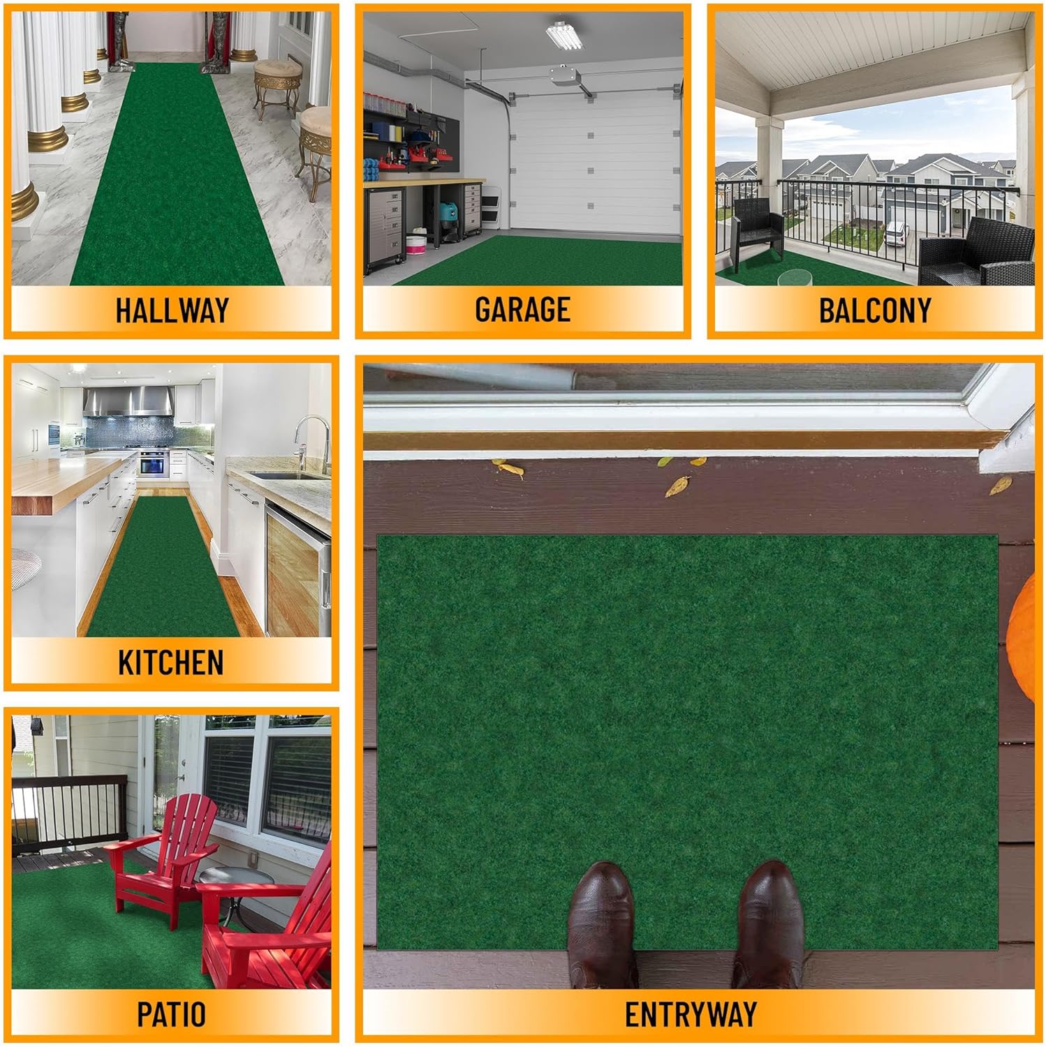 Ottomanson 2' x 54' Hallway Runner with Scraper Pile Extra Durable Non-Slip Rug Mat for Indoor & Outdoor Use - Ideal for Kitchen, Entryway, Patio & Garage - High-Traffic Carpet, Green