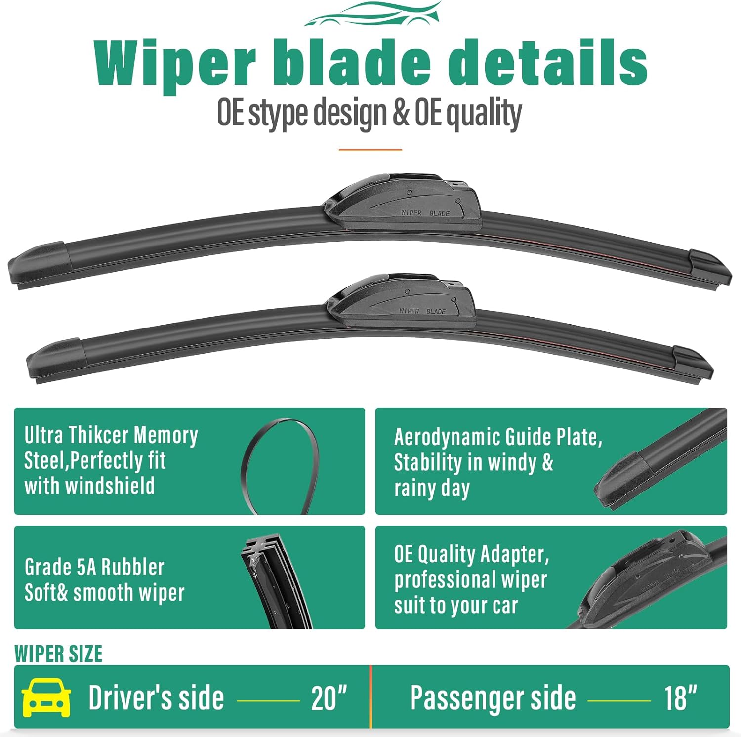 - [More Quiet wipers]: Precision engineering for optimal contact and even pressure distribution ,aerodynamic design reduces wind lift and noise.