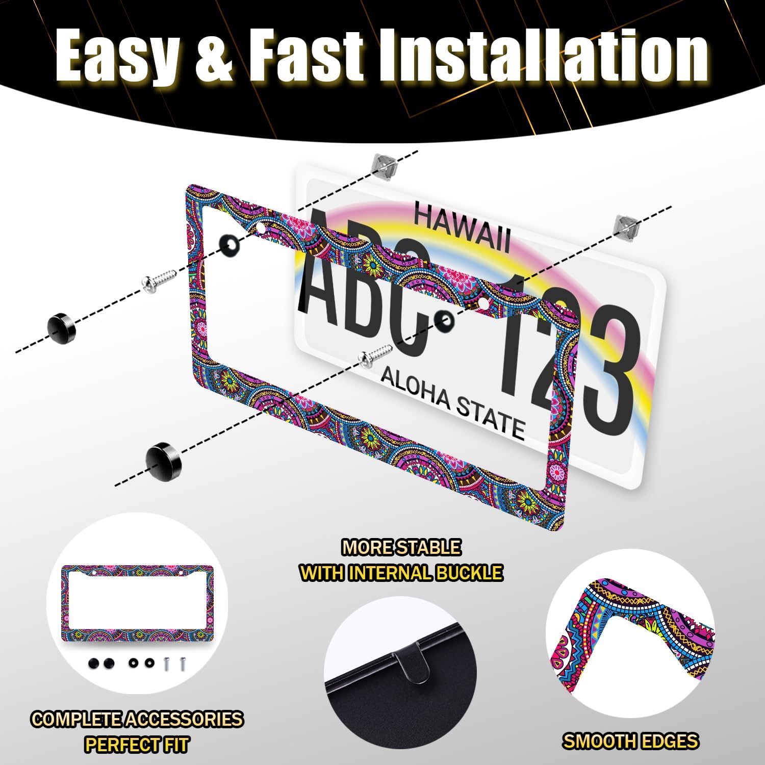 - This license plate Frame with holes, including Accessories: screws, nuts and washers. Easy to install.you don’t need to buy any other hardware or fasteners. Anti-theft caps are also included
