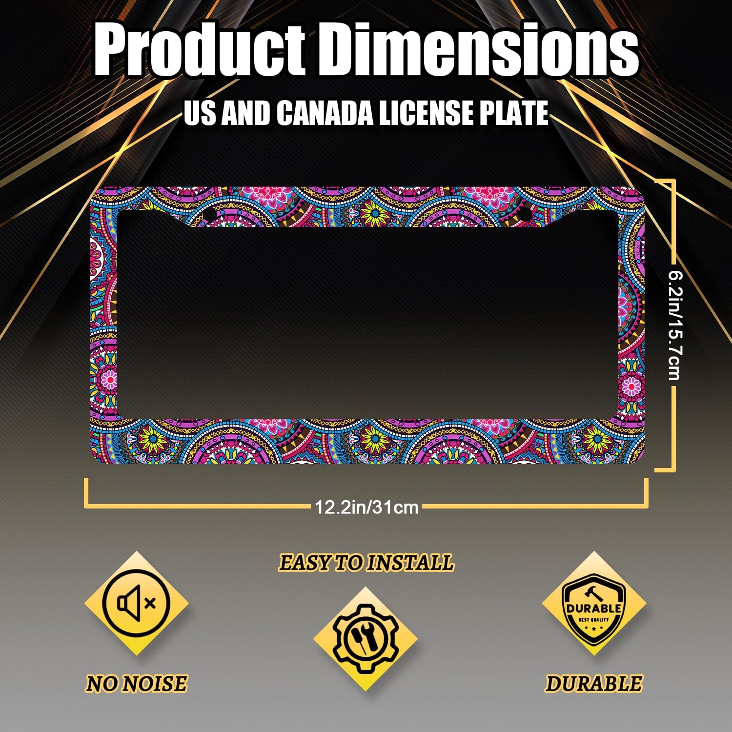 - The size of the license plate frame is: 12.3" x 6.3" , it fits all standard size US and Canada vehicle license plates.the stylish design frame fits ly on your car license plate.