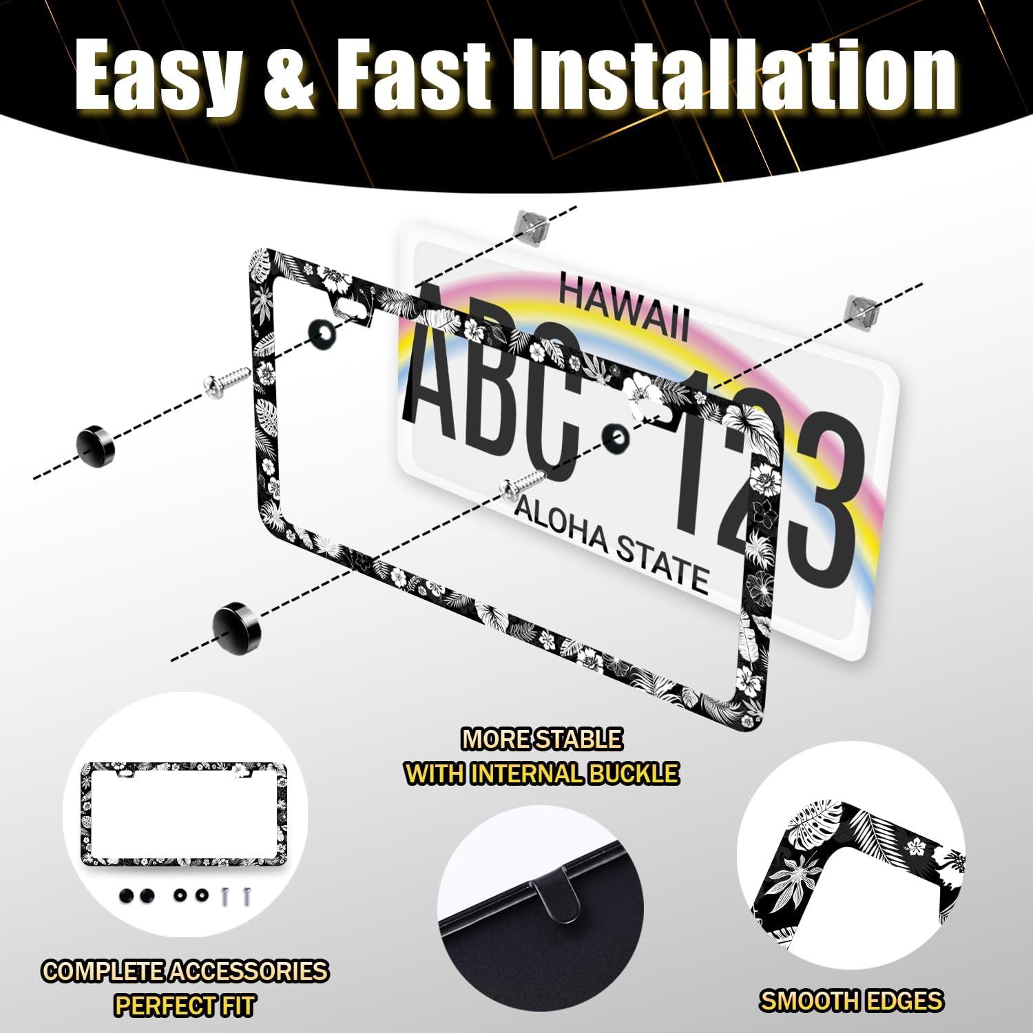 - This license plate Frame with holes, including Accessories: screws, nuts and washers. Easy to install.you don’t need to buy any other hardware or fasteners. Anti-theft caps are also included