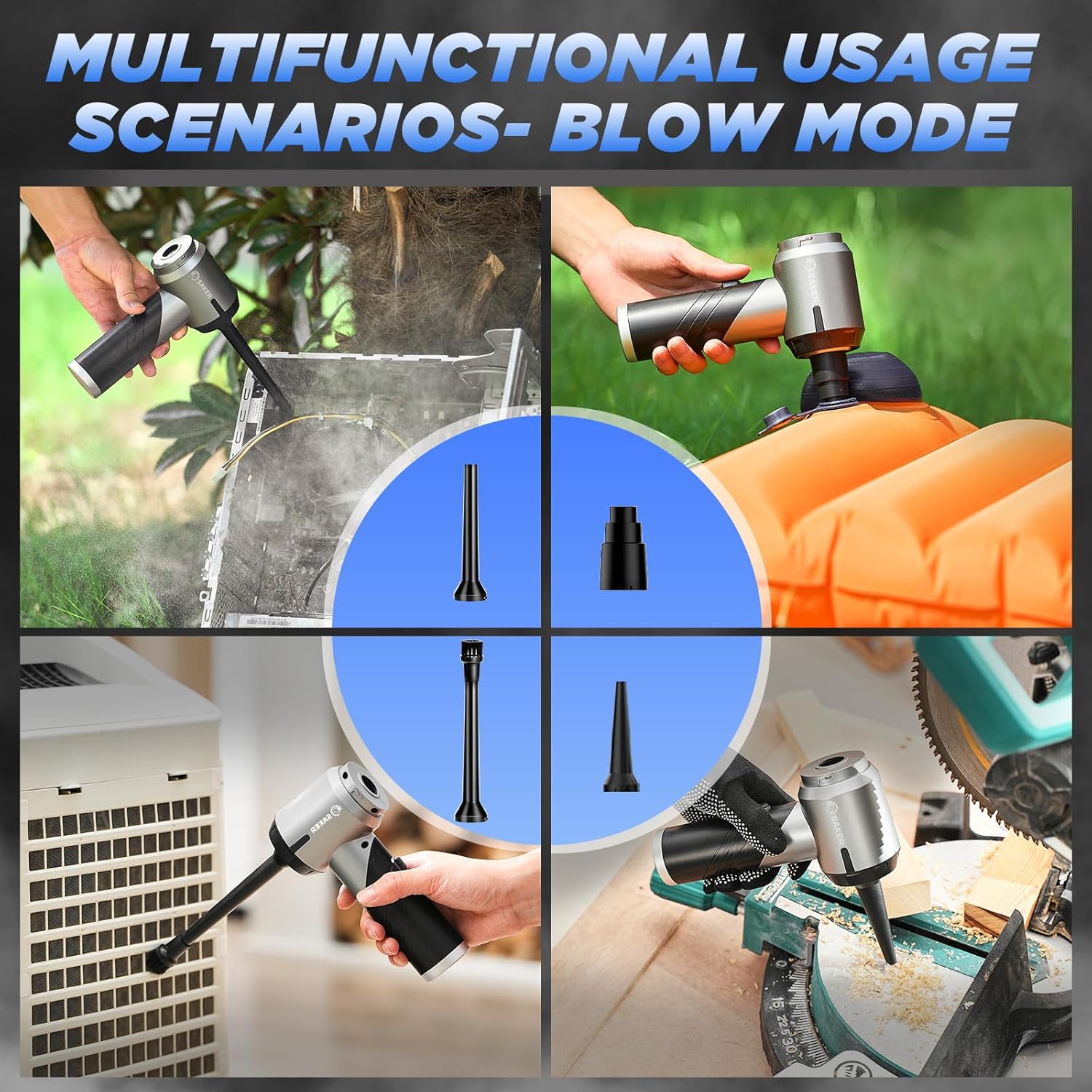 - 【3-in-1 Multifunctional Mini Car Vacuum Cleaner】Saker portable car vacuum is equipped with a variety of accessories to meet various usage scenarios such as blowing, sucking and pumping. It can not only clean computer keyboards, host computers, windows and other difficult-to-clean gaps, but also sofas, seats, cars, woodworking workshops, offices, etc, to meet your various cleaning needs.