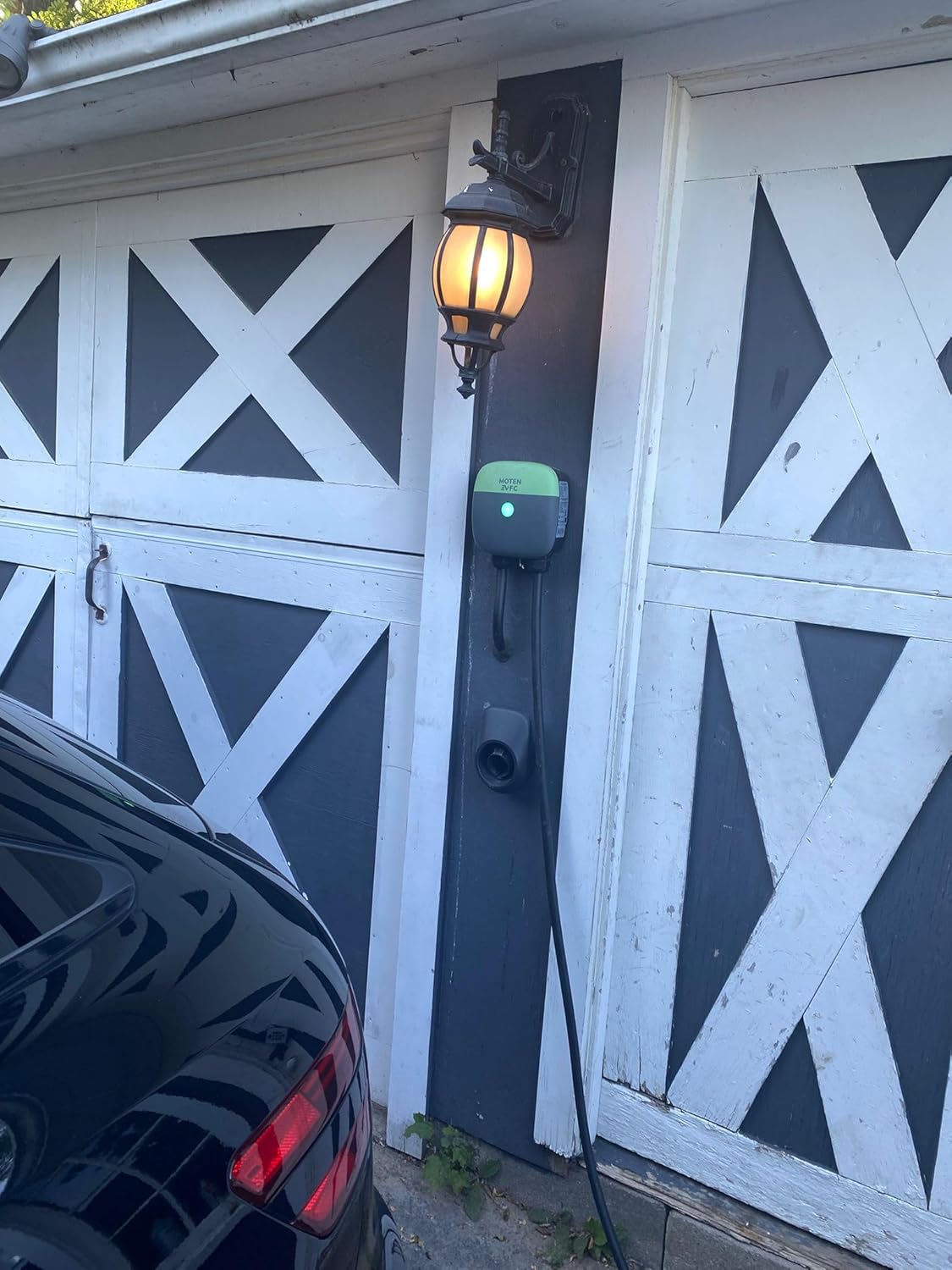- 《TECHNICAL SPECIFICATIONS》: COMPACT SIZE: 7.1” x 7.1” x 3.7” ESTIMATED CHARGING SPEED: Up to 45 miles/hour (72 km/h) CABLE LENGTH: 25-foot cable with connector holster CONNECTOR TYPE: J1772 Type 1 plug, impact-resistant, IP65 / IK08 rated for indoor and outdoor use. PRODUCT WEIGHT: 13.5 lbs. CONNECTIVITY OPTIONS: Wi-Fi, RFID, OCPP compliant, eMÖTEN App INSTALLATION TYPE: Hardwired 3-feet Cable Whip ADJUSTABLE POWER: 16A to 48A with a Dip switch inside the charger SUPPLY CIRCUIT: 208/240 V, 60 A HOLSTER INCLUDED: J1772 Wall Mount Connector Holster ENCLOSURE RATING IP65 / IK08 for Indoor or Outdoor installation, NEMA TYPE 3R OPERATING TEMPRATURE: -22°F to +122°F (-30°C to +50°C