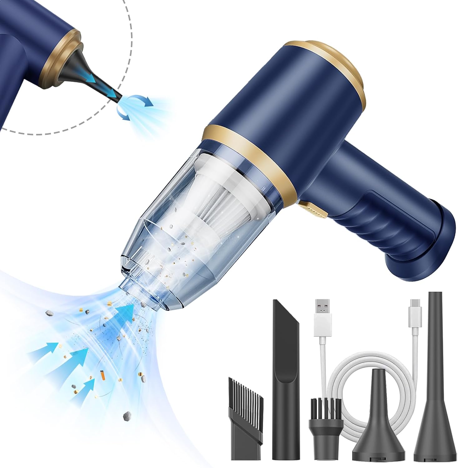 Mini Car Vacuum Portable Cordless Handheld Vacuum Cleaner and Air Duster 2 in 1 with Multi-Nozzles for Car, Computer, Sofa, Office, Pet, Home (Blue and Gold)