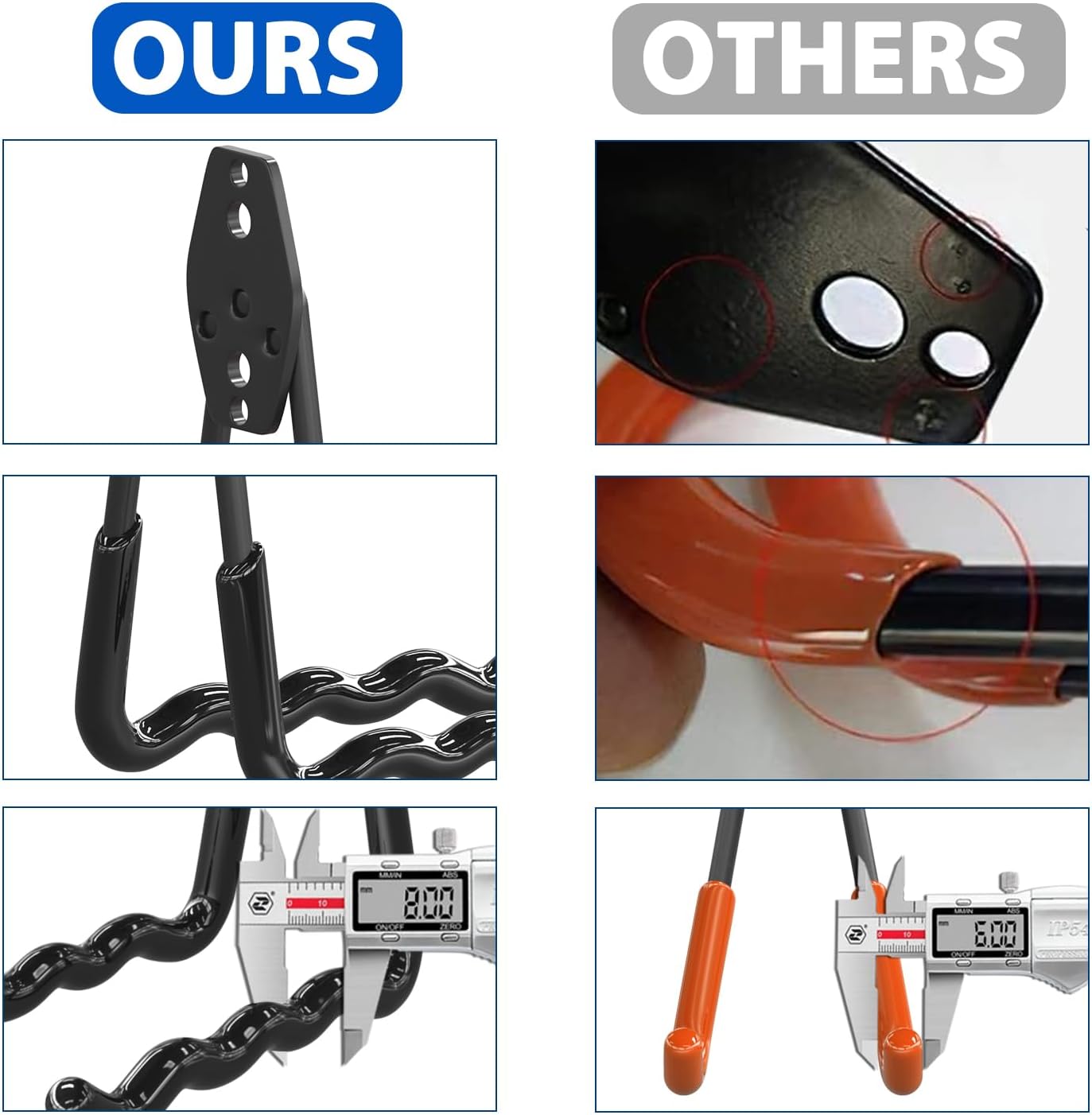- BEAR MORE WEIGHT:Our 3 Welding Spots Garage wall hooks are designed with extended length plate distributing weight evenly for superior holding capacity.By contrast with other 2 welding spots garage hooks, our heavy duty garage hooks reinforce the stability and improve the load bearing. Unlike garage hooks wall mount with short and ineffective thread screws, our garage hanging hooks come with stronger hardware that goes deeper into your wall for firm hold and grip.