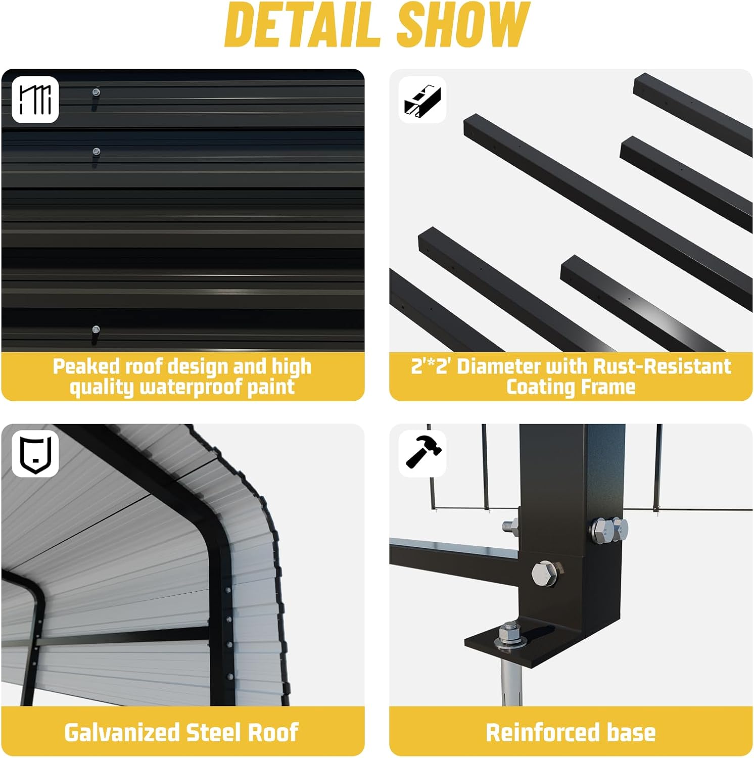 - Distinctive design: Waterproofing is essential for an outdoor carport, so the roof is designed with a water seal to reduce the likelihood of rainwater leaking out. The carport base features an upgraded reinforced design for added stability. Allows you to install your outdoor carport on dirt floors, asphalt or concrete.