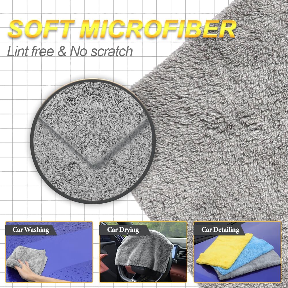 Drying Towels Car Detailing(Coral Fleece) Car Wash Cleaning Towel For Car Exterior and Interior ,Absorbent, Lint-Free, Extra Soft,Reusable and Durable,Microfiber Rags 16in x 16in-Grey 12 Packs