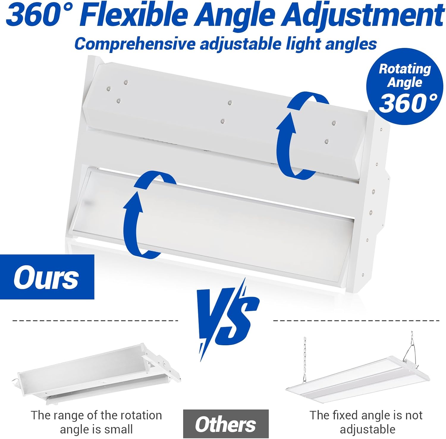 - 【High Quality 360° Adjustable Linear High Bay Lights】 We are new here, but we definitely have 17 years history in light manufacturing. JTT Lights focus on creation and quality that aiming to provide excellent and professional products to our customer. The 150W Led Linear High Bay Light has a 360-degree rotation. Easily adjust it before installation. Ideal for factory workbenches, warehouse shelves, or parking lot corners. It has 5 years warranty, after installation, it can avoid frequent quality issues and multiple repairs, reducing and avoiding subsequent maintenance and labor costs. Making you enjoy an efficient lighting experience for work and life..