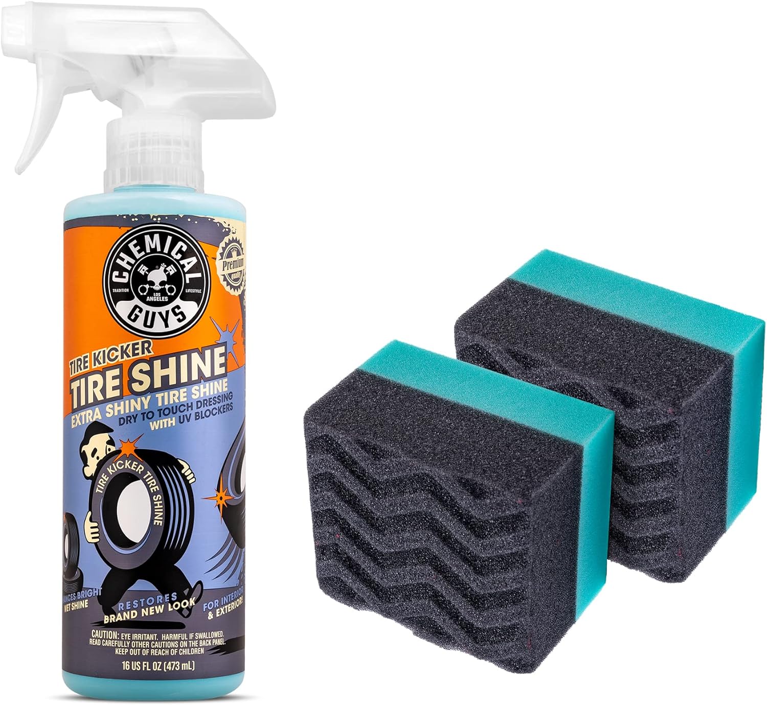 Chemical Guys Tire Kicker Sprayable Extra Glossy Tire Shine With Applicators (Works on Rubber, Vinyl & Plastic) Safe for Cars, Trucks, Motorcycles, RVs & More, 16 fl oz