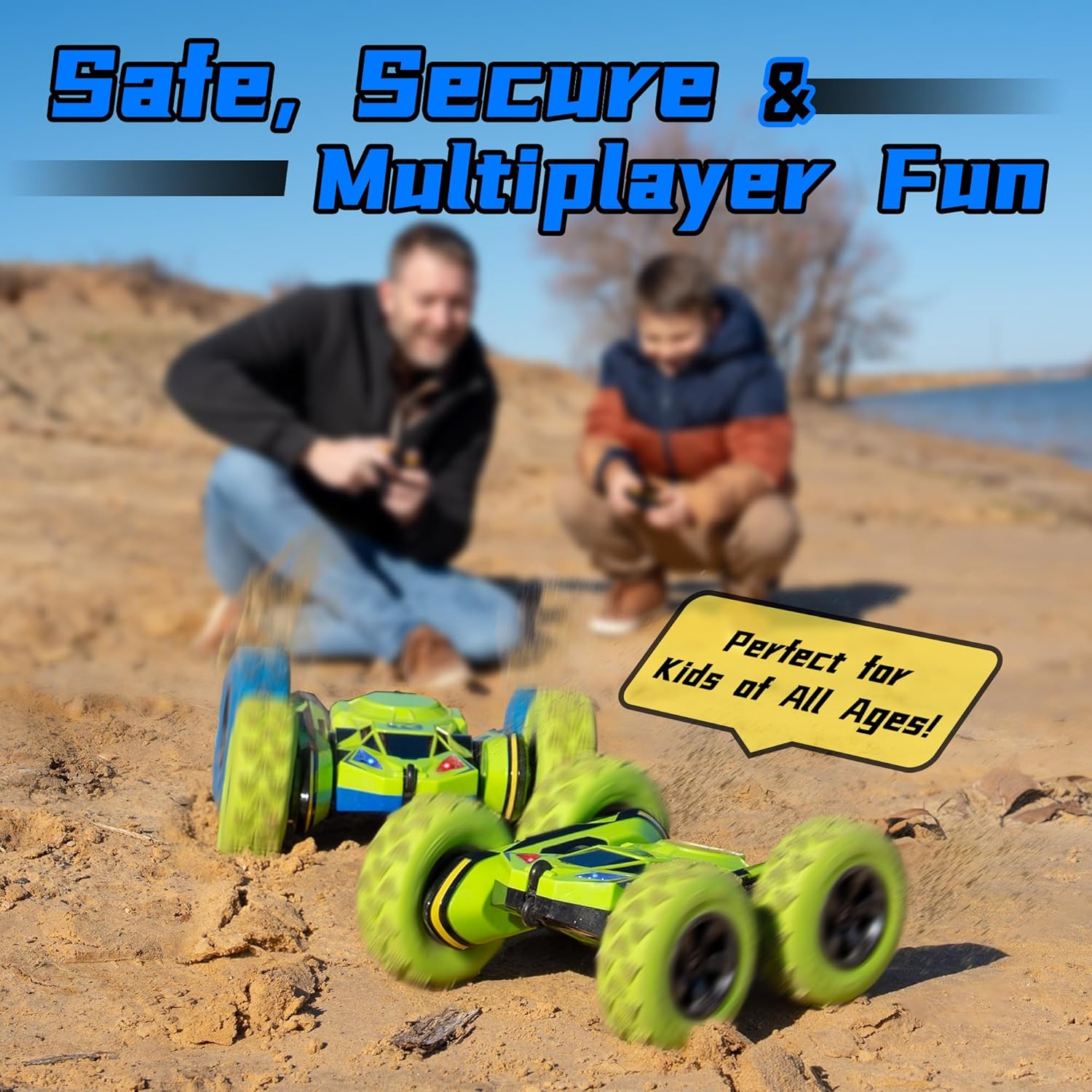 - TOYS THAT CHILDREN LOVE: In addition to the basic skills that ordinary remote control cars should have, stunt flips and double-sided driving will make it very easy to climb over small obstacles or around them and freed the car from the annoyance of model car rollovers.It will offer an exciting and versatile experience for kids. Nice presents for kids ages 6 to 12.