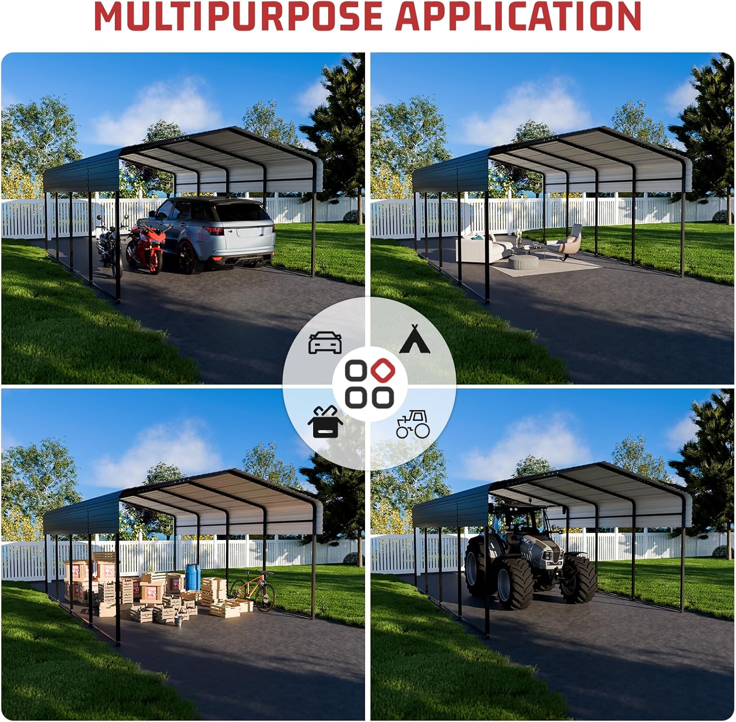 - Multi Use Carport: The 13'x20' outdoor heavy duty carport canopy garage car shelter with enough room for you to place your vehicles, trucks and boats. The carport not only can be used as a car carport canopy, but also can be used as a activity shelter for outdoor events like parties, weddings and commercial fairs.