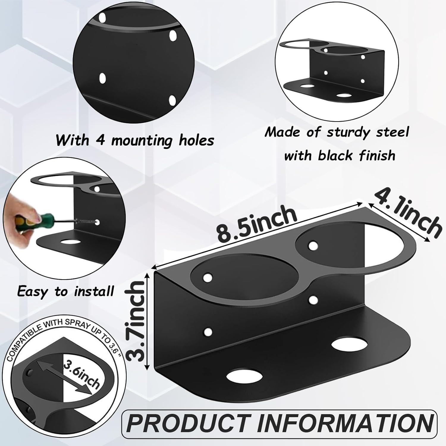 2 Pack Spray Bottle Holder Wall Mount, Metal Aerosol Spray Can Holder Rack Organizer with Double Holes, Heavy Duty Paint Bottle Can Storage Rack with Hardware Easy Install for Garage Home Workspace