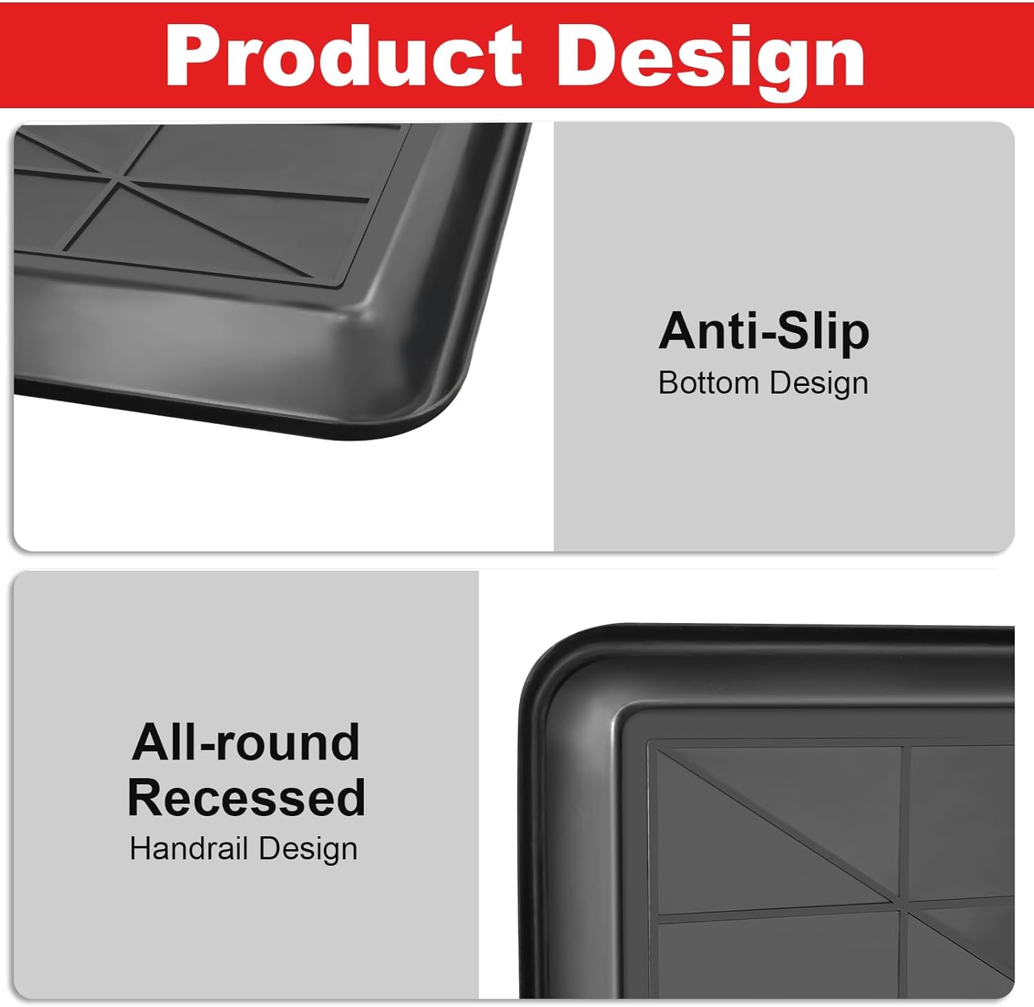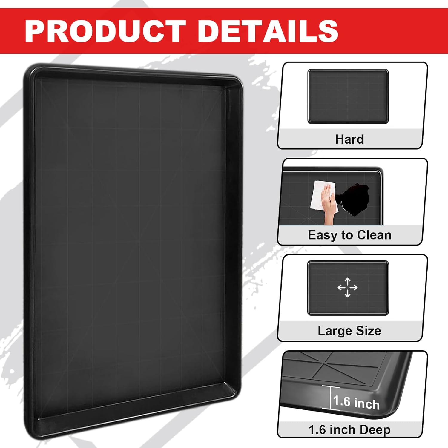 - 【Sturdy and Reliable Material】 The car oil drip pan is made of high-quality thickened plastic material, and the bottom is reinforced design to ensure the stability of the tray structure, not easy to damage and can be used for a long time, the black matte surface is very easy to clean and convenient to use.
