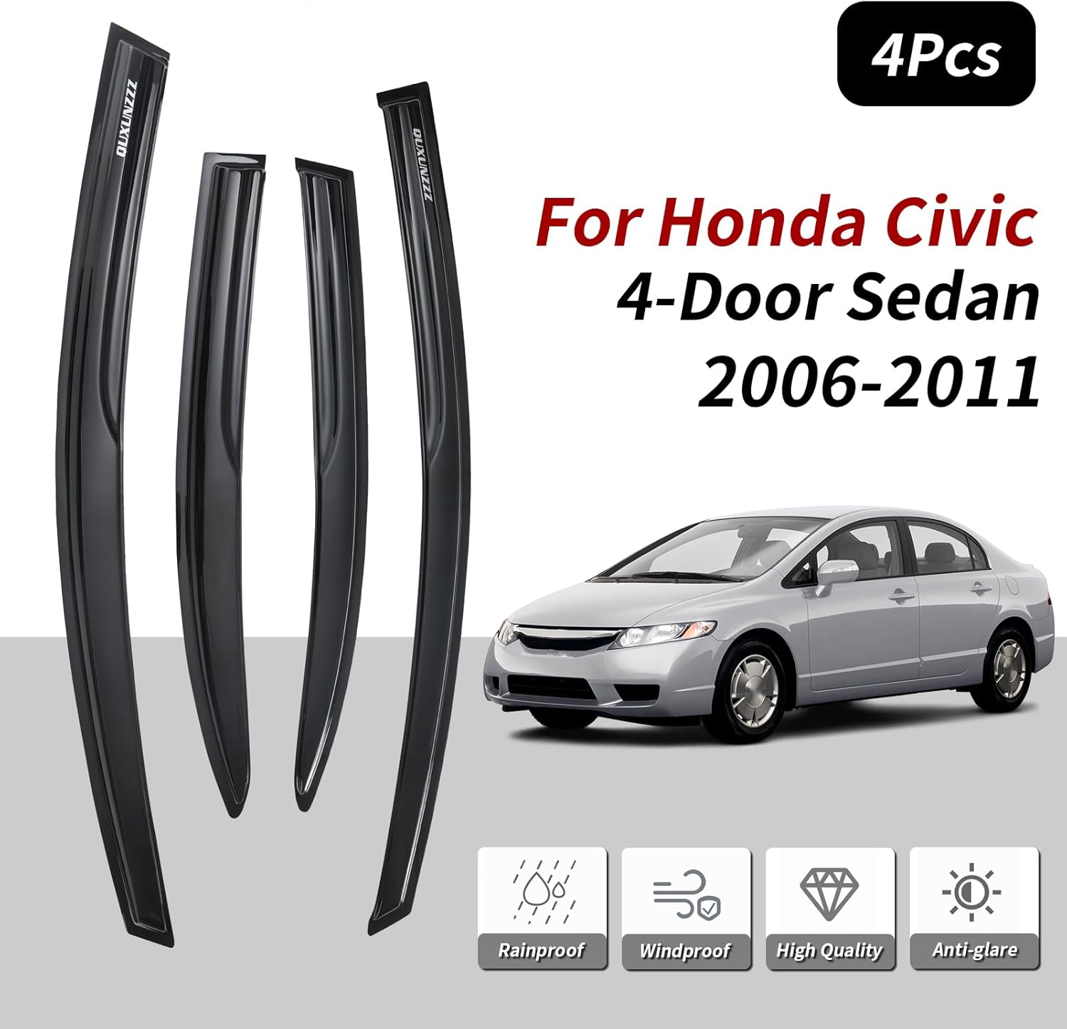 Rain Guards Side Window Visor Vent Outside Mount, 4PCS Fits for Honda Civic 4-Door Sedan 2006 2007 2008 2009 2010 2011