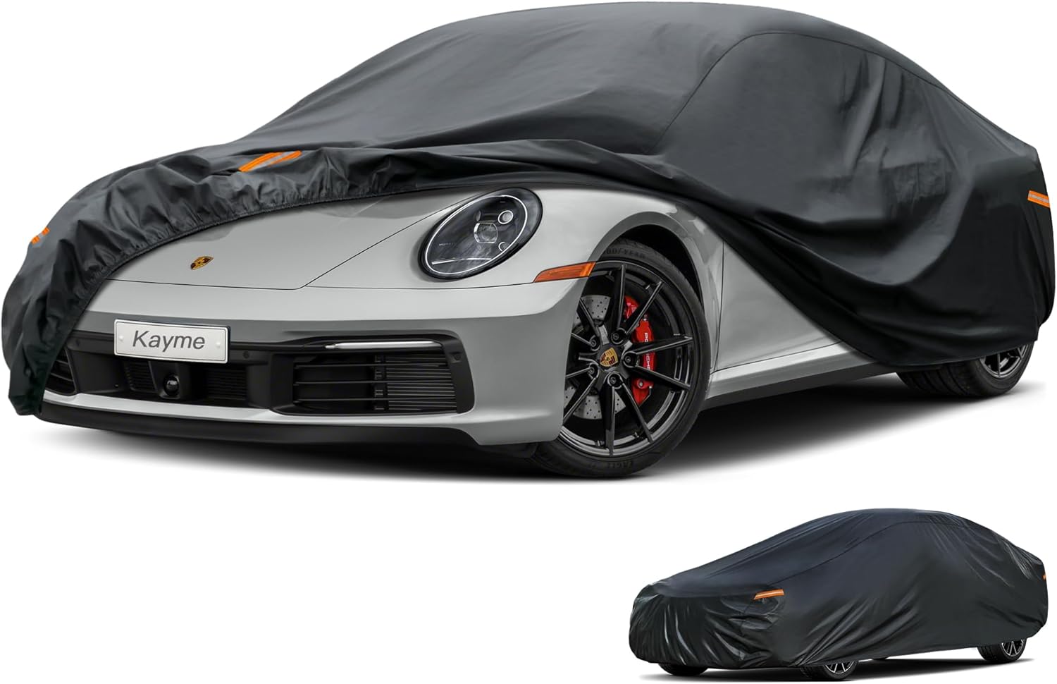 Kayme 7 Layers Coupe/Sedan Car Cover Waterproof All Weather for Automobiles, Outdoor Full Cover Sun UV Protection, Universal Fit for Porsche 911 Carrera S 4S, Chevy Corvette C4 C5 C6 C7(178-185 inch).