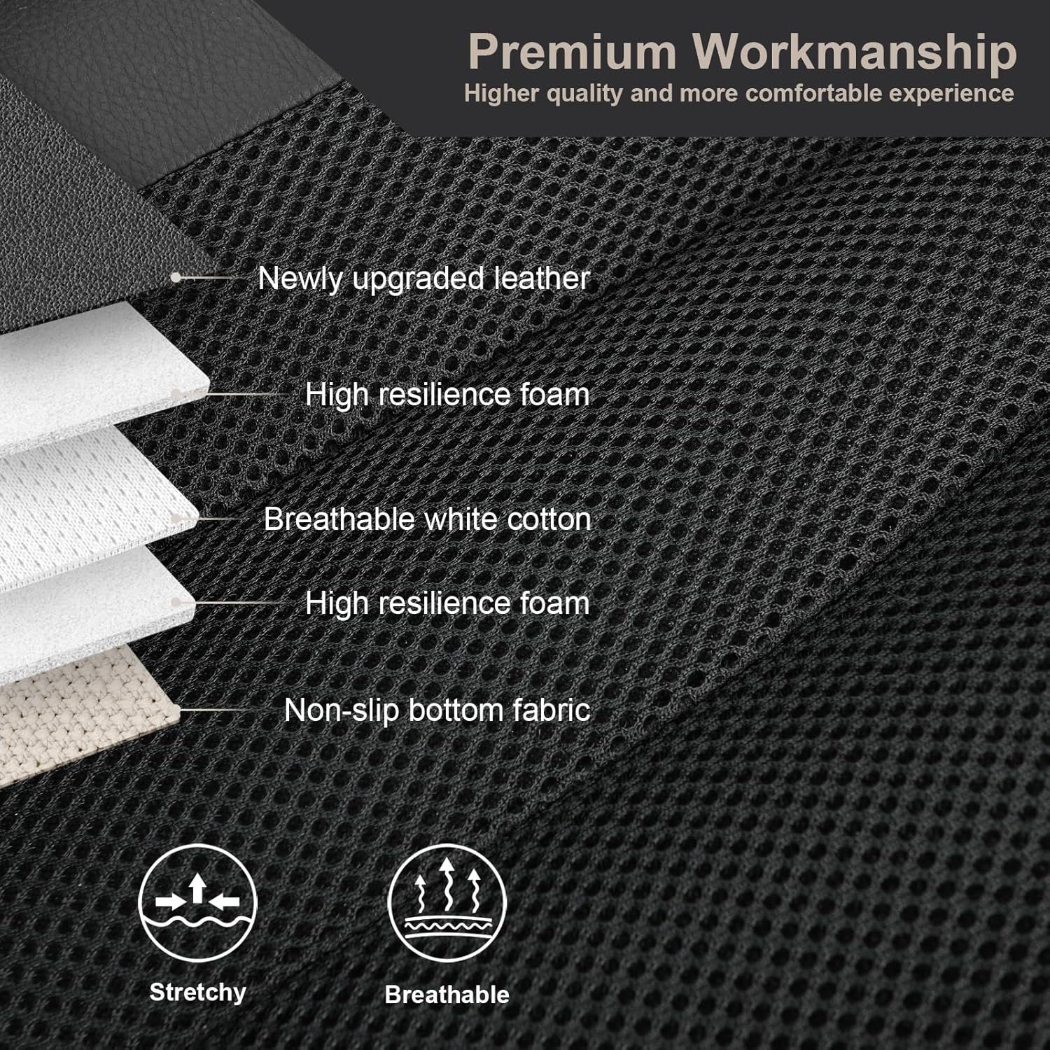 - The combination of padded faux leather and breathable mesh not only enhances overall practicality and aesthetics but also protects the original seats from wear, stains, and pet hair