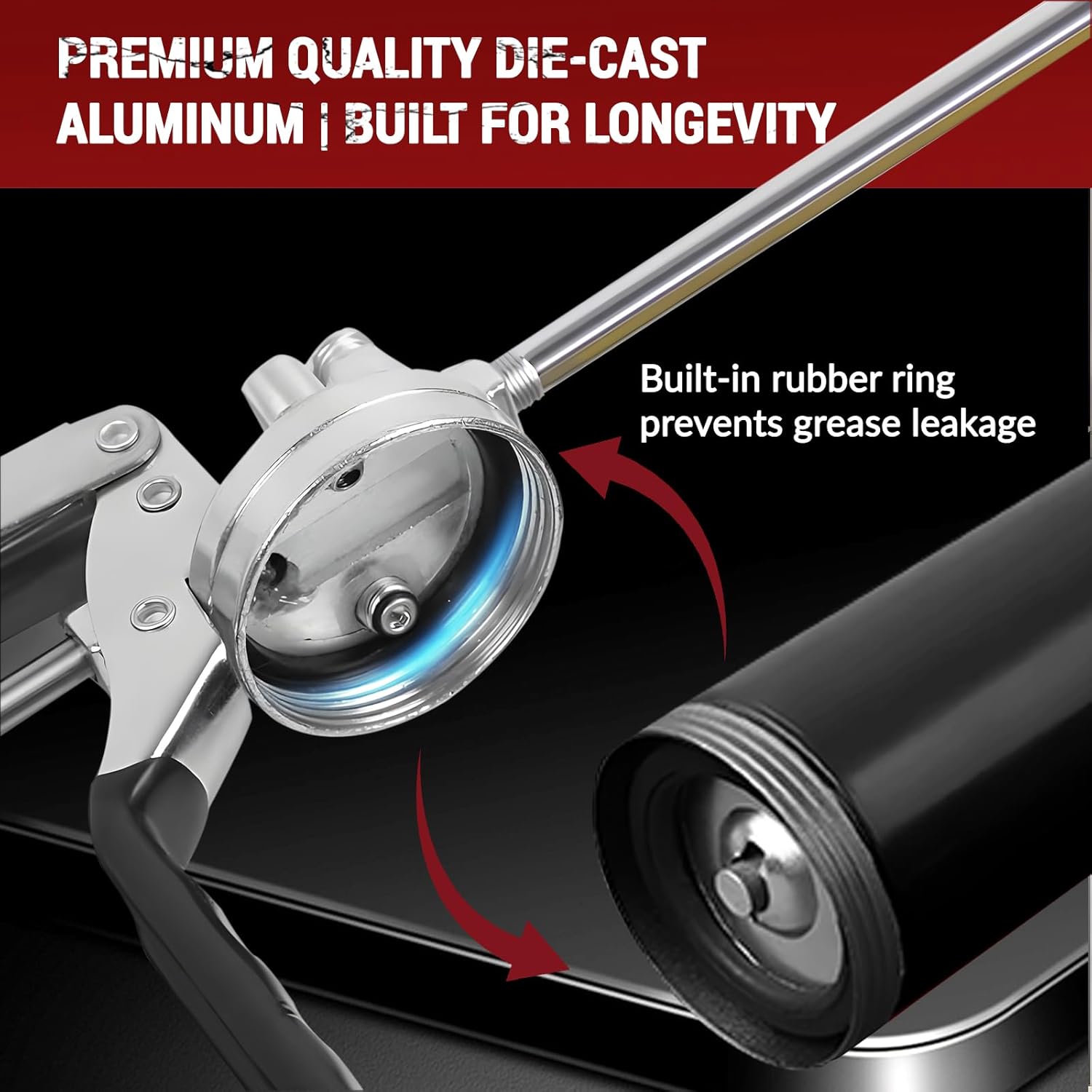 - Premium Quality & Durability: The GATTLELIC grease gun features a high-quality die-cast aluminum construction, providing a maximum working pressure of 8000 PSI. Designed for heavy-duty use, this grease gun ensures long-lasting performance in machinery, vehicles, and more