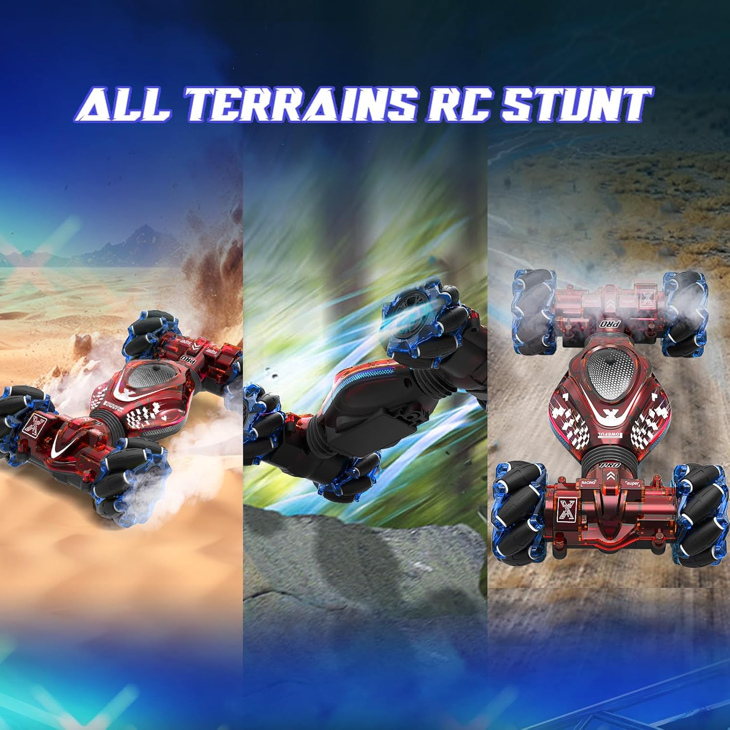 - All-Round Drift Stunt RC Car:4WD gesture sensing stunt car can drive and drift in all directions, 360° rotation, 45° climbing, snaking, double-sided flip, twist into off-road and on-road modes.children to operate this off road stunt car via 3 senstive control modes easily. Loads of fun for your kids.