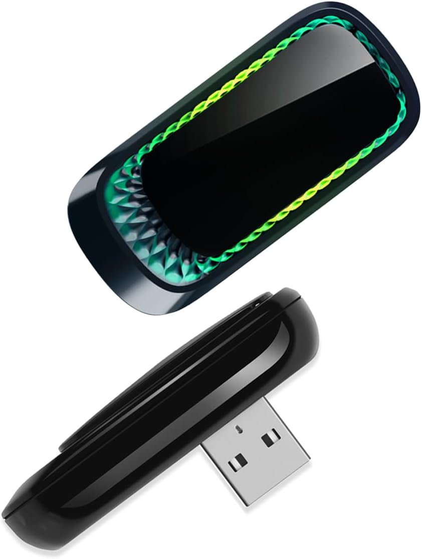 3-in-1 Wireless CarPlay Adapter for Apple CarPlay & Android Auto with RGB Ambient Lighting – Plug & Play - Small USB Dongle Works with Both iPhone and Android Phones, Model Z1 Style-T