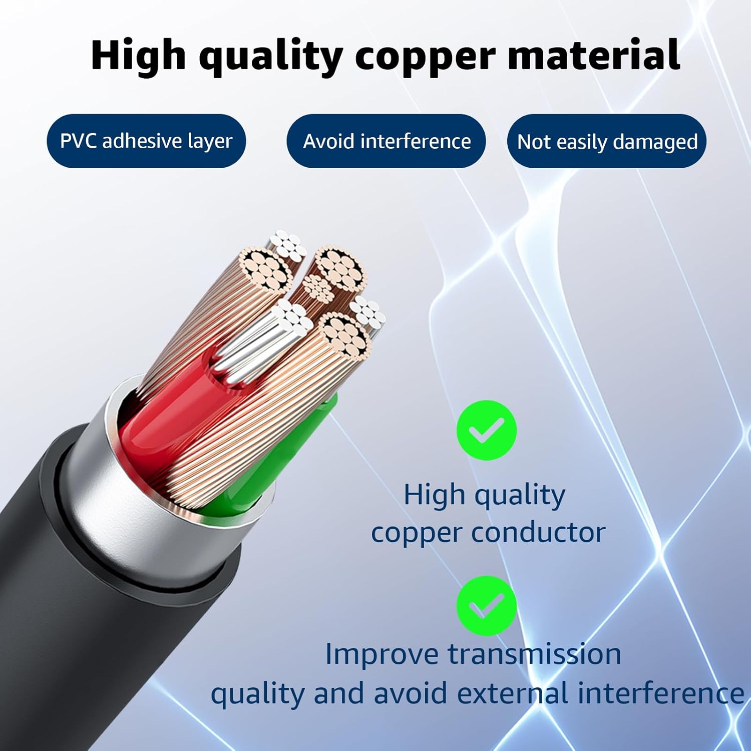 - Industrial Quality:Made of high quality copper material and highly elastic PVC adhesive layer for durability and flexibility, with enhanced signal transmission and resistance to external interference