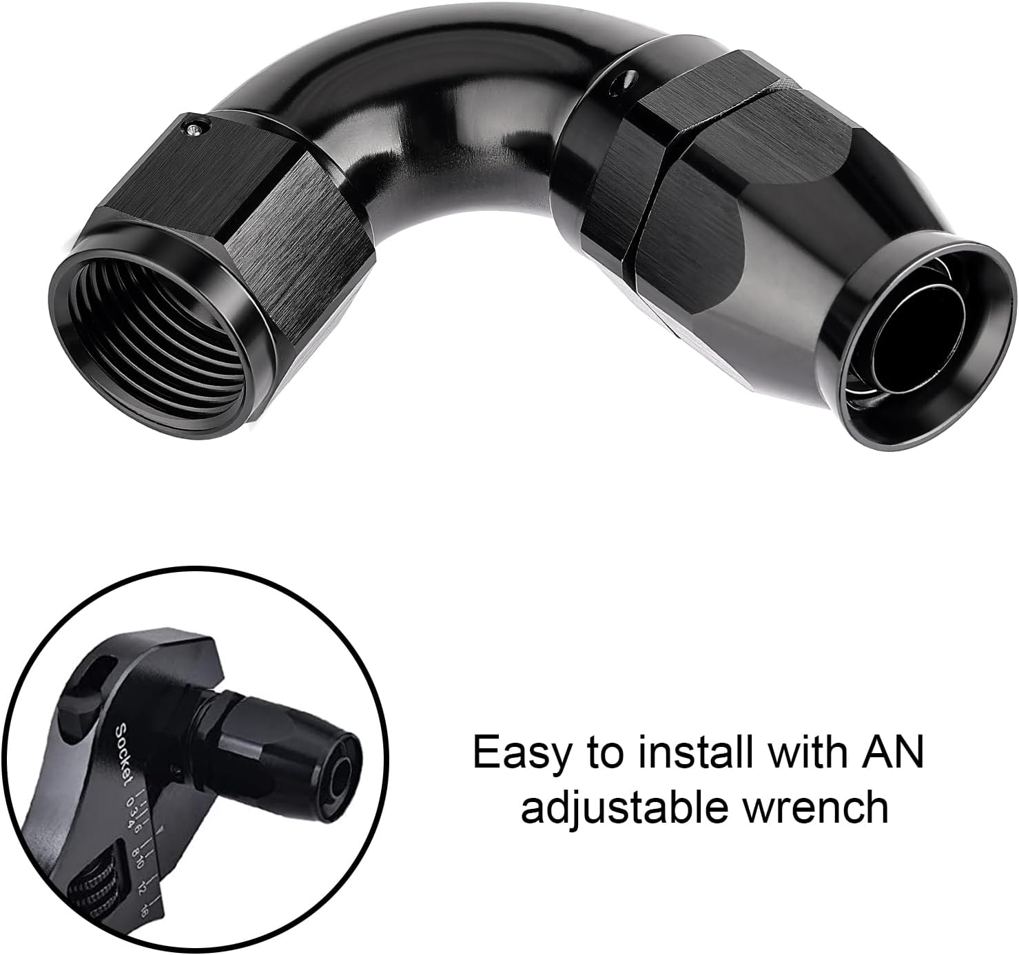 - [Built to Last] The one-piece PTFE hose end fitting is made from lightweight 6061-T6 aluminum alloy, and a black anodized finish on the surface increases durability, anti-corrosion, and wear resistance.