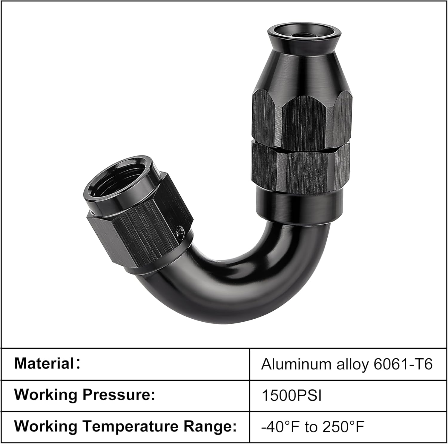 - [Built to Last] The one-piece PTFE hose end fitting is made from lightweight 6061-T6 aluminum alloy, and a black anodized finish on the surface increases durability, anti-corrosion, and wear resistance.
