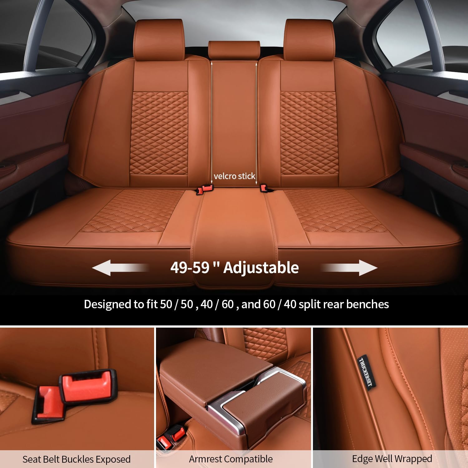 Car Seat Covers Full Set Leather Seat Covers Automotive Seat Covers Universal Car Seat Cover for Most Cars Brown