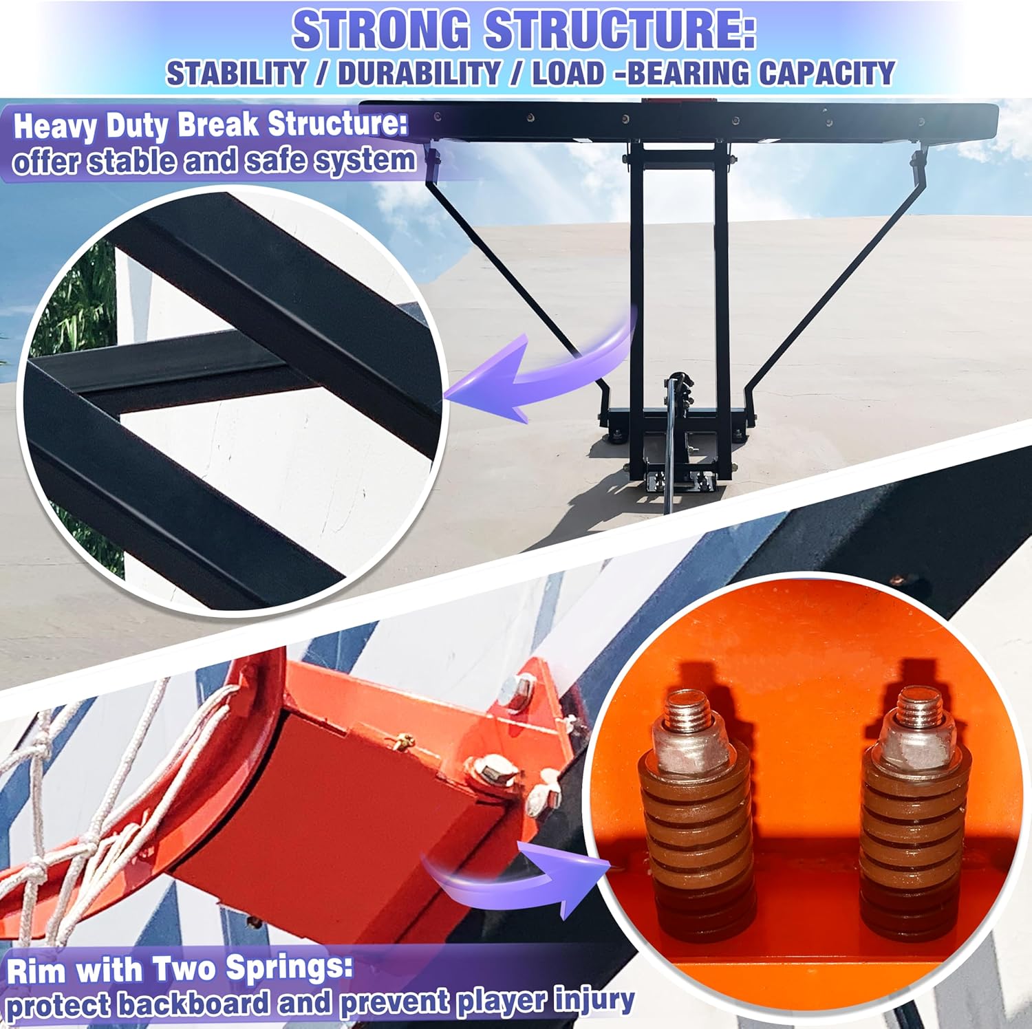 - Strong Structure: overall bracket is made of thicker stronger heavy duty steel, give you one safe and stable basketball hoop system. Basketball rim has two springs, compared with one spring or no spring, two spring design allows the rim to bend without shattering the backboard