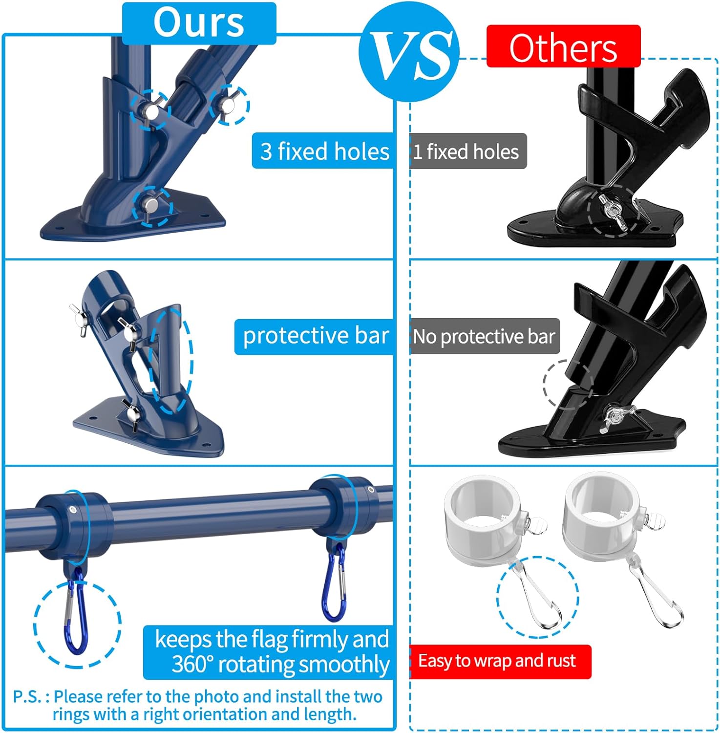 - Exquisite Design: 2*Flag Poles Diameter 1'', 2*Upgraded Brackets, 4*New Tangle Free Rings, 6*Carabiners, 2*Top Balls, 1*Installation Manual