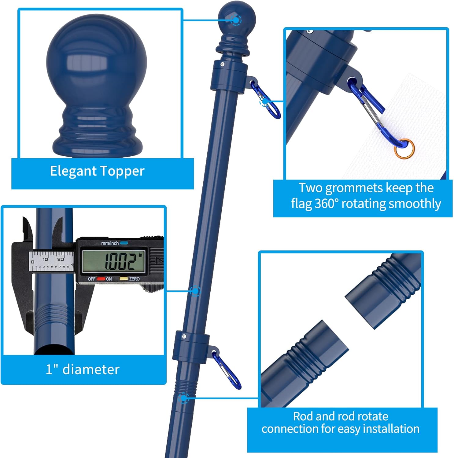 ZMTECH Flag Pole - Upgraded Bracket,(2 Packs) 6 FT Stainless Steel Flag Poles for Outside House, Residential or Commerical, Tangle Free Flag Pole Kit for American Flag (Without Flag, Blue)