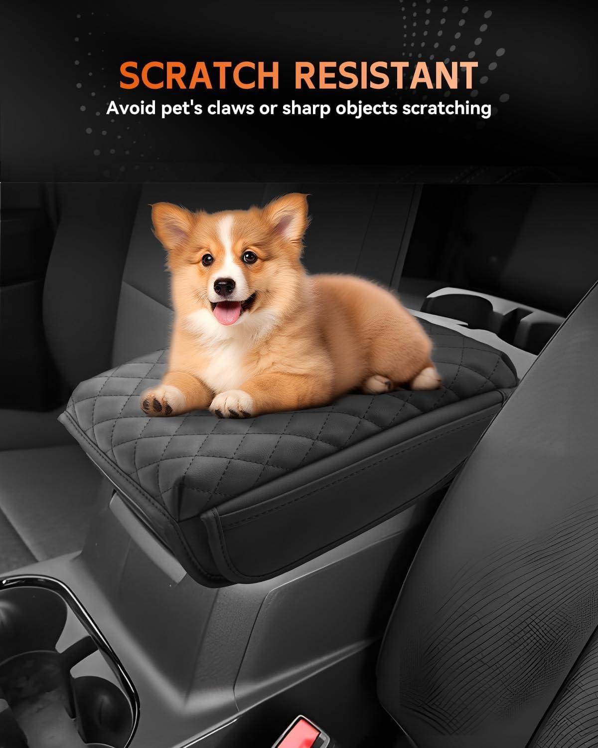 - [Excellent Scratch Resistance] The car Armrest Cover is made of high quality PU microfiber leather, thick enough to keep out pet paws, dust and sticky fingers. The surface is waterproof, wear-resistant and durable, breathable, light weight and easy to wipe clean of dirt.