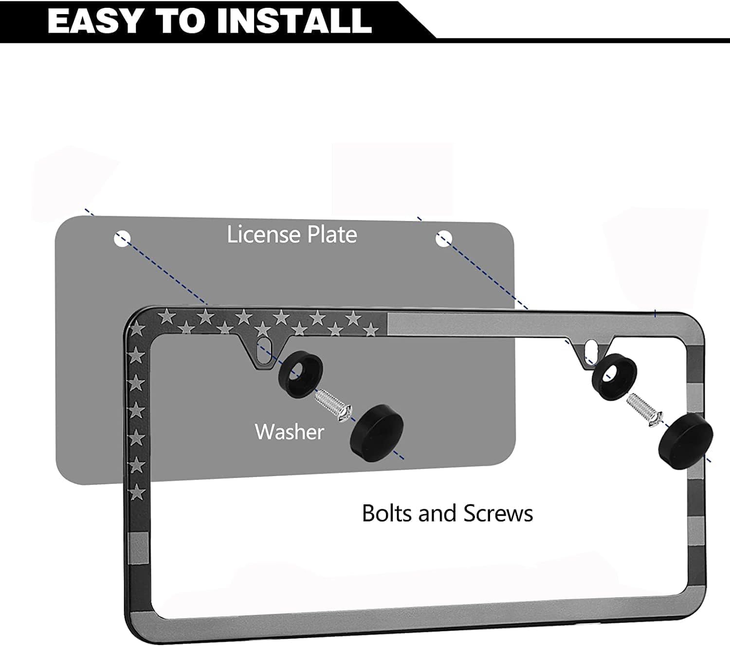 - What you will get: 2 license plate frame cover, 4 Screw Caps, 4 Self-tapping Screws, 4 Machine Screws, 4 Washers, 1 Screwdriver.All the necessary accessories provided for your installation.