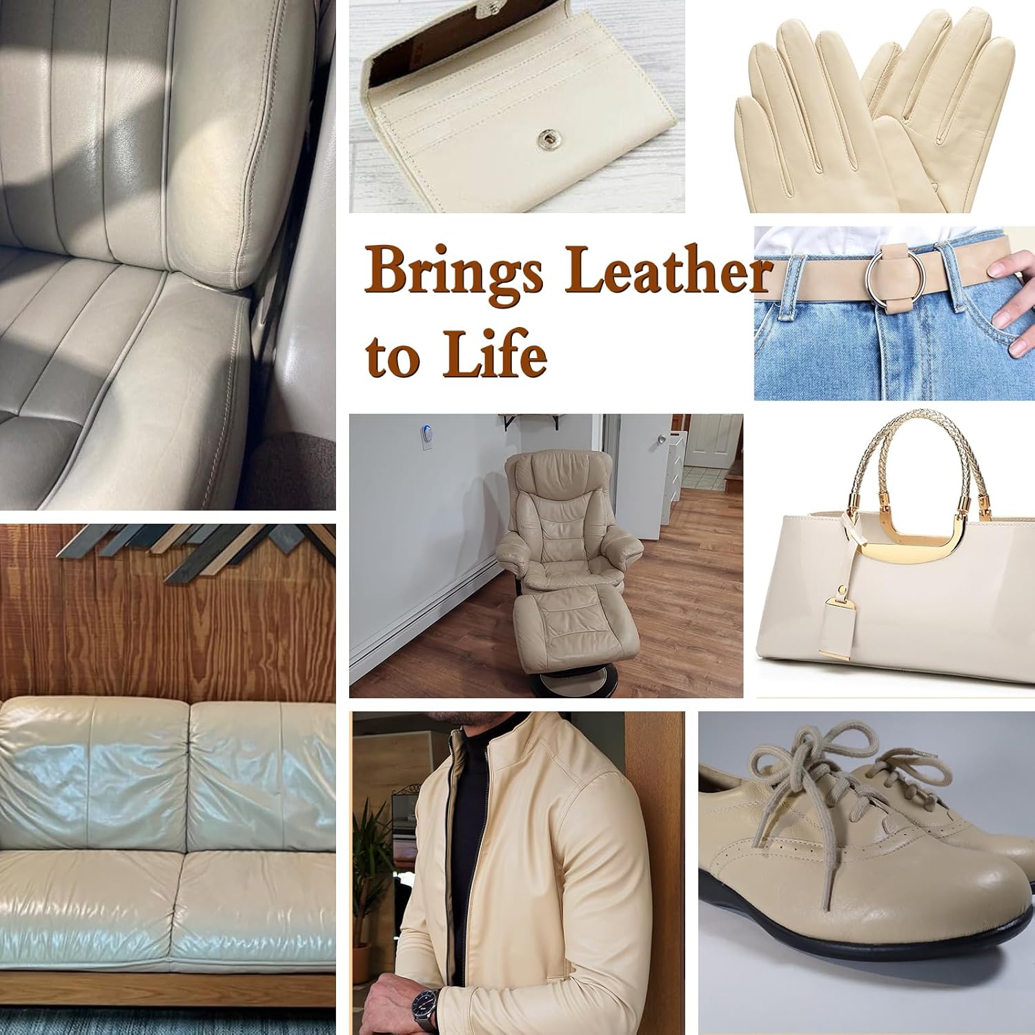 - Beige Leather Color Restorer: Our deep beige leather repair kit is formulated to effectively restore the color of your leather couches. The leather balm penetrates deep into the leather fibers, reviving its original hue and texture