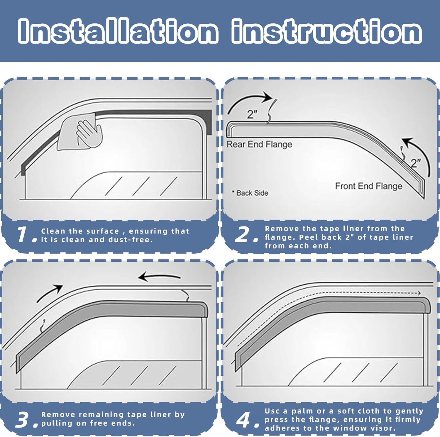 - 【Installation】-No need for any drilling or special tool. Our Window Visors with tape for extra-strong grip, no drilling is needed ,and no disturbed in the windows up and down. [NOTE: Avoid washing your car for the first 24 hours after installation.]