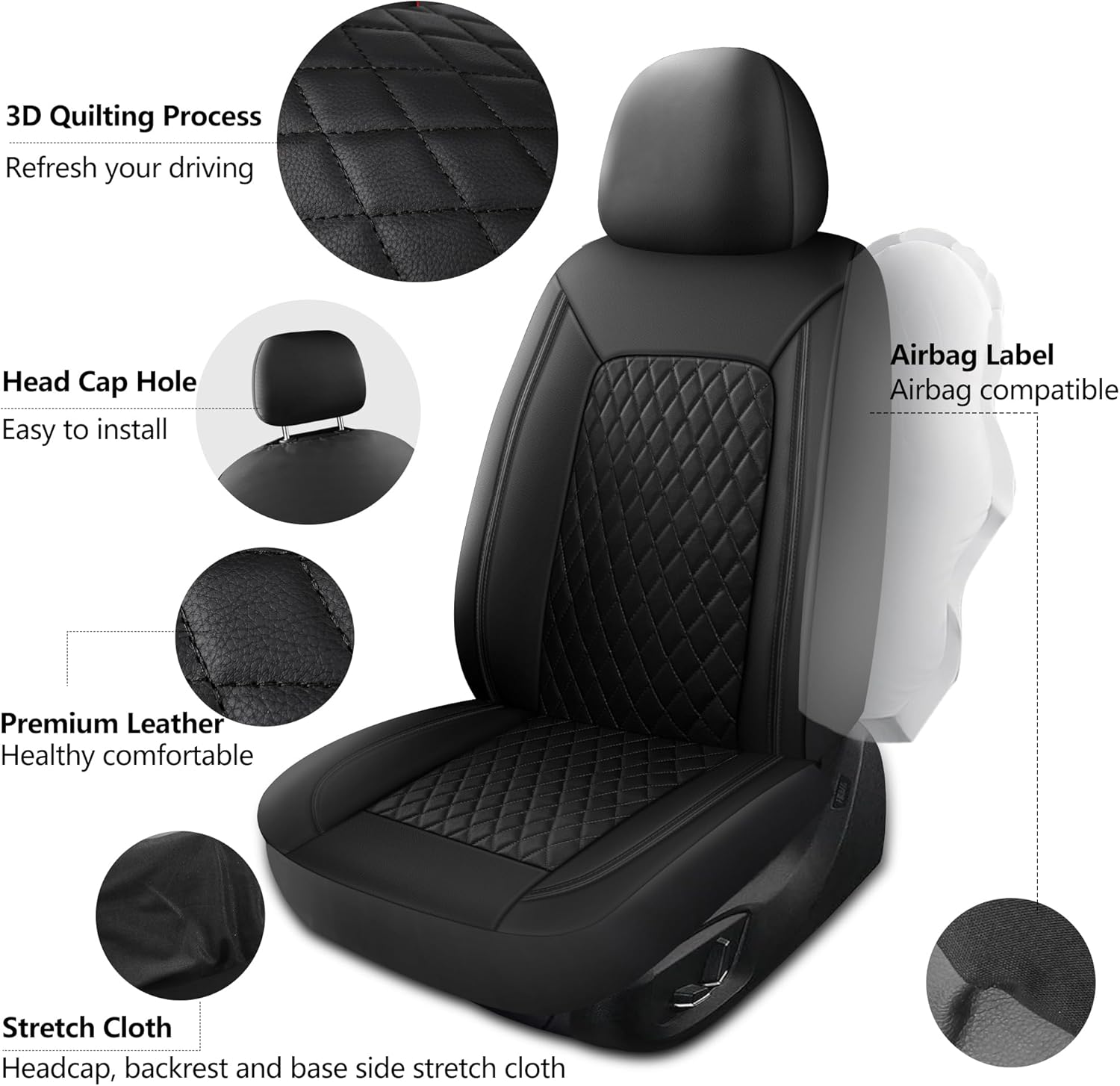 - High Quality & Universal Fit:Premium breathable black leather automotive seat covers crafted with meticulous attention to detail. Designed to seamlessly complement your interior, ensuring durability for years to come. Enhance your car's interior with its beautiful design and superior quality. Suitable for most sedans, cars, SUVs, vans, and trucks.