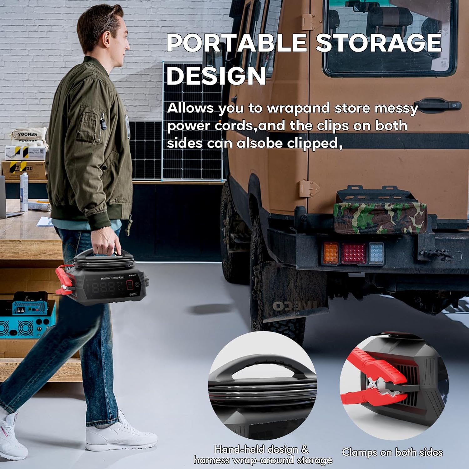 - 【One-Button Start】Car Battery Charger can automatically identify the type of battery, and one-click start, Max current 6V/10A, 12V/35A, 24V/18A. The ability to quickly charge your battery, easy to operate, folding grip, easy to carry and store.