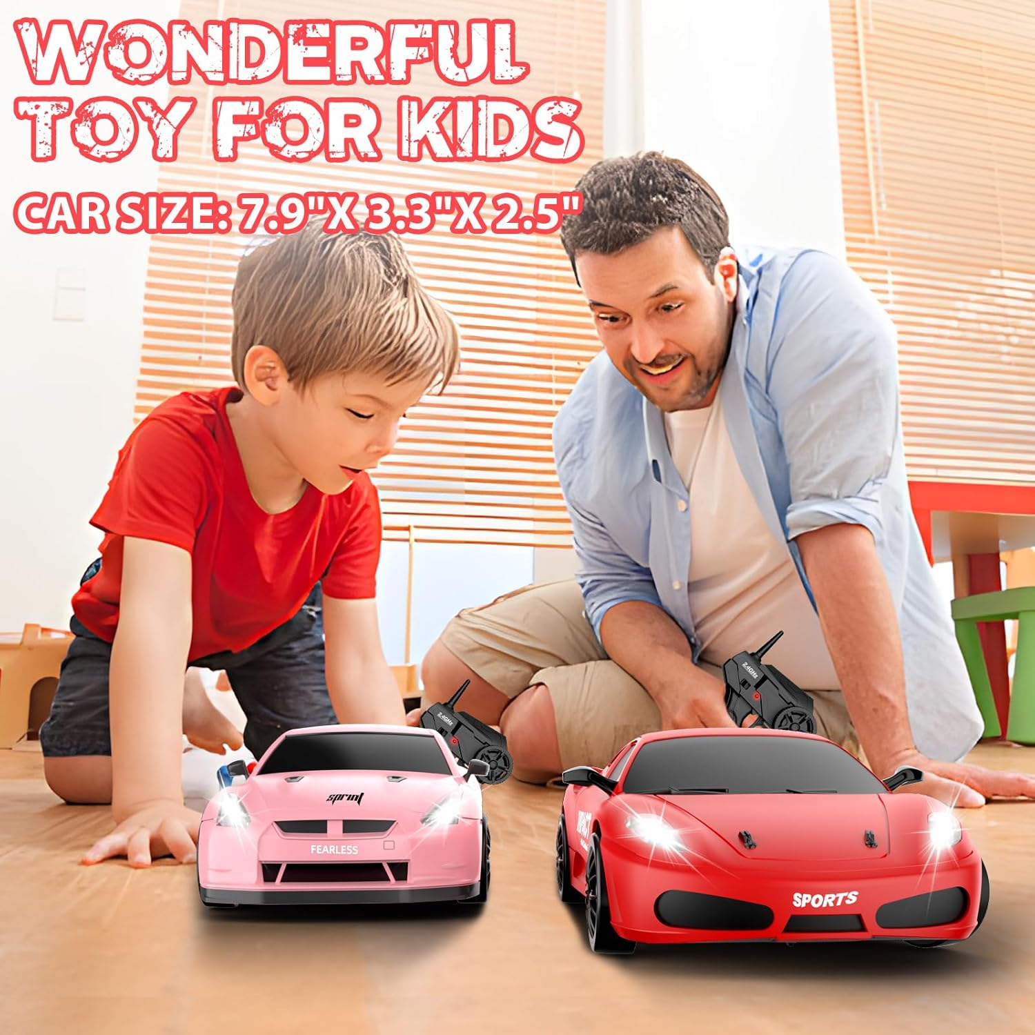 RC Drift Car, 2.4GHz Remote Control Cars 1/24 4WD High Speed Drift Car with LED Lights and Dritfing Tires Vehicle Racing Toy Cars with Two Batteries for Boys Girls Adults Kids (Red)
