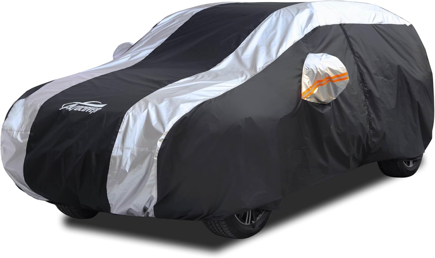 SUV Car Cover Waterproof All Weather Protection with Silver Stripe Design,Universal Fit Toyota RAV4, Honda CRV, Tesla Model Y, Audi Q5, Nissan Rogue, Mazda CX-5, Kia Sorento,Hyundai Sante Fe