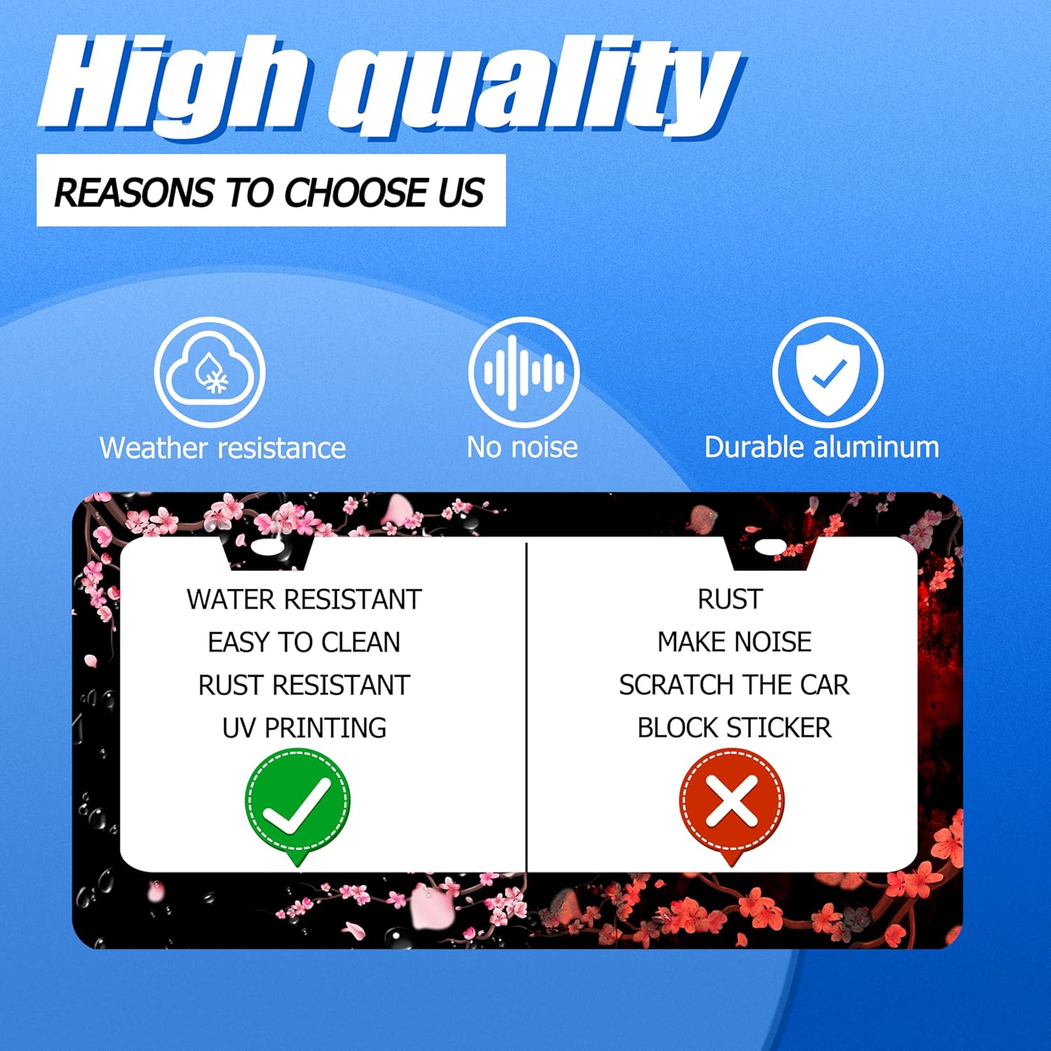 Cherry Blossom License Plate Frame Beautiful Flowers Pink License Plate Stainless Steel Funny License Plate Holder Floral Car Accessories Decoration With Screws Fits Standard Vehicles Size 12.3"x 6.3"