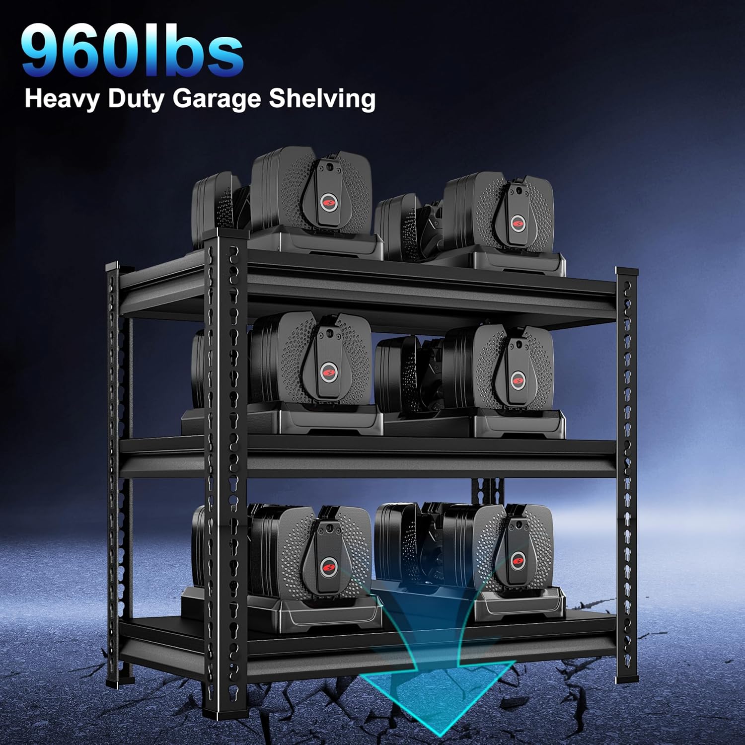 - 【Large Loads Capacity】 Made of all industrial grade metal, this 3-tier heavy-duty garage shelving holds 350 lbs each shelf and 1050 lbs in total. You're free to pile on tools, supplies, or whatever you need in your garage or warehouse