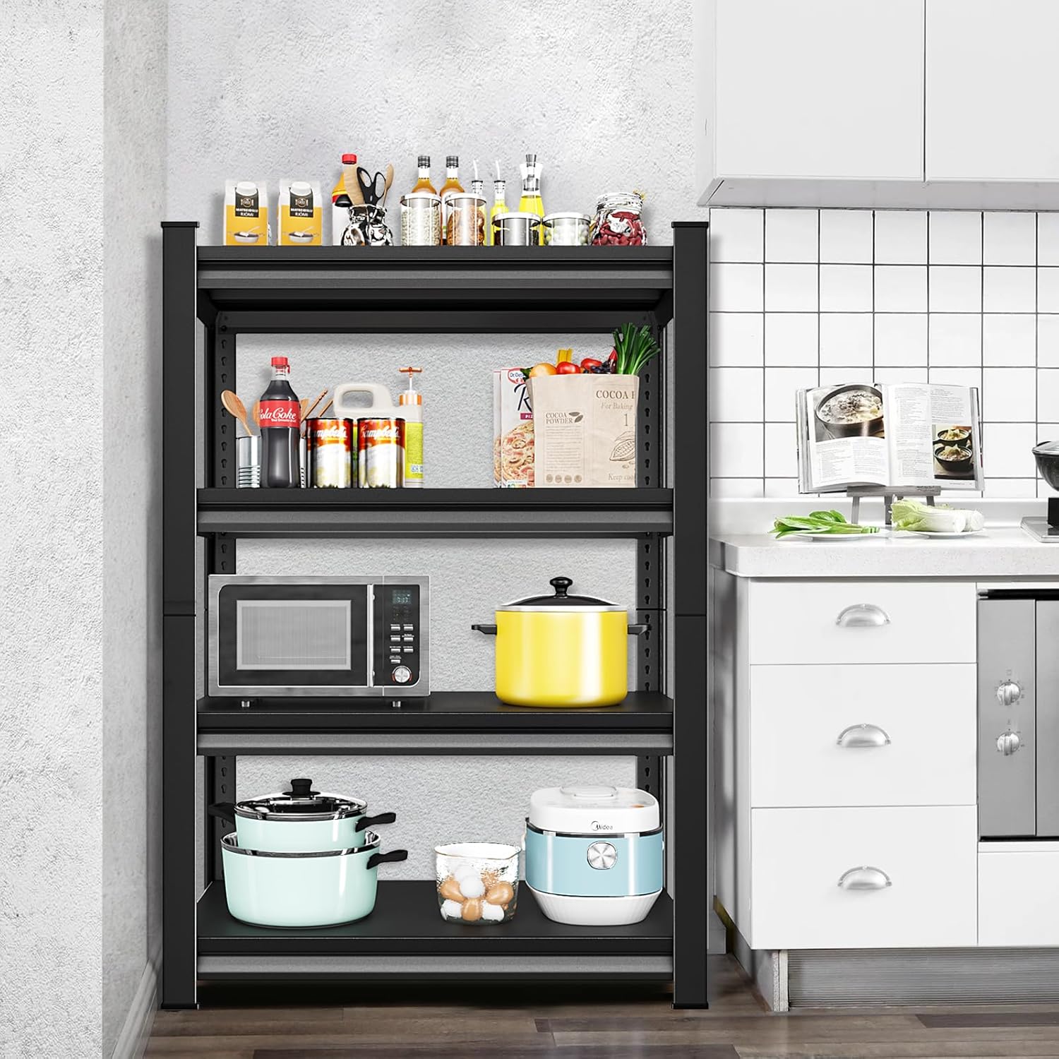 1400LBS Garage Storage Shelves Heavy Duty, 35" W x 16" D x 66" H,4-Tier Garage Shelving Heavy Duty, Industrial Metal Shelving Units for Basement,Fish Tank,Black