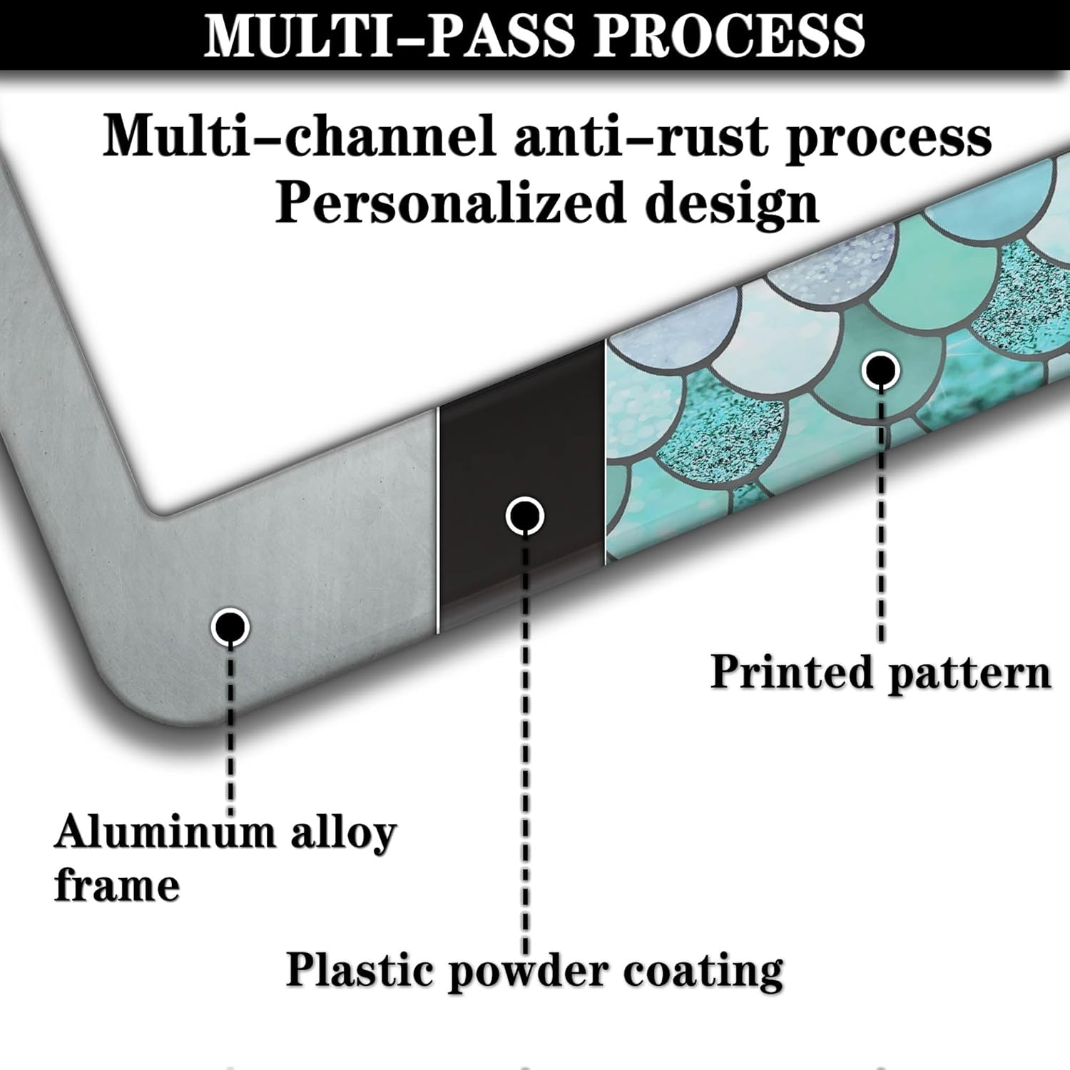 License Plate Frame Holder Pink License Plate Frames for Women Ombre Mermaid Scales Women Aluminum Metal Car Accessory 2 Pack with Screw Covers Set