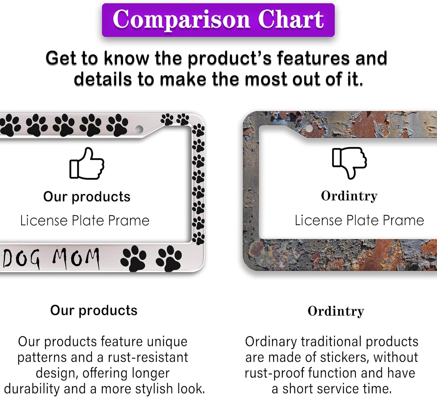 Fun License Plate Frame Cover Black and White License Plate Frames Dog Mom Dog Lover Aluminum Metal Car Accessory 2 Pack with Screw Covers Set