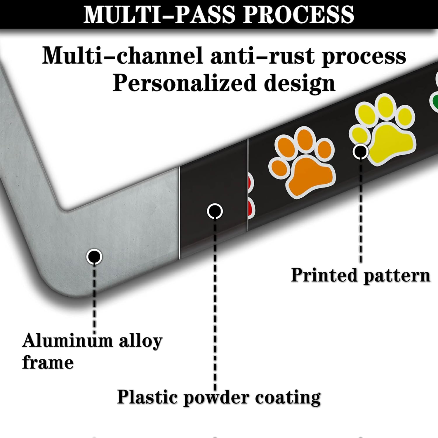 License Plate Frames for Women Multicolor License Plate Holder for Men Gay Rainbow Paw Universal Aluminum Car Accessory 2 Pack with Screw Covers Set