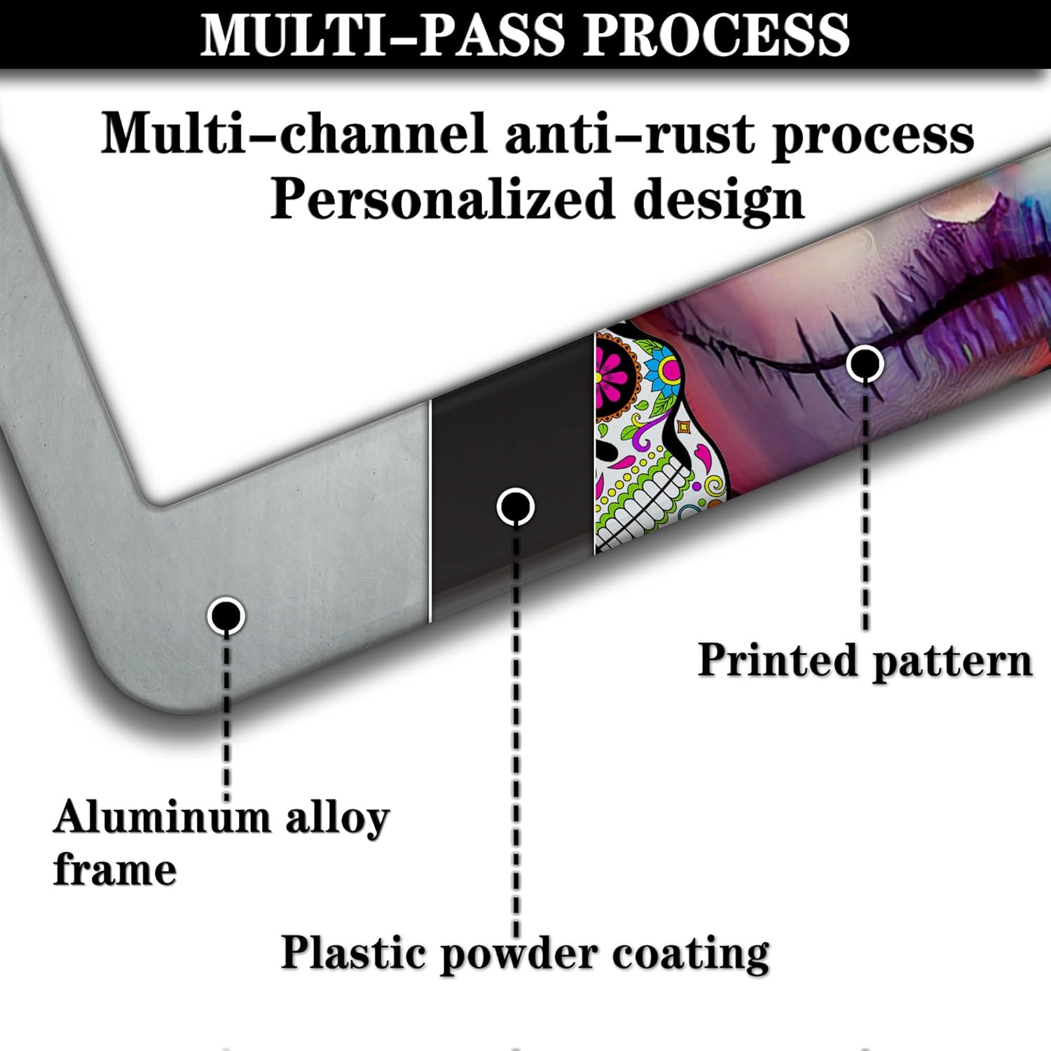 License Plate Frames for Women Multicolor Plate Cover for Men Sugar Skull Universal Aluminum Car Accessory 2 Pack with Screw Covers Set